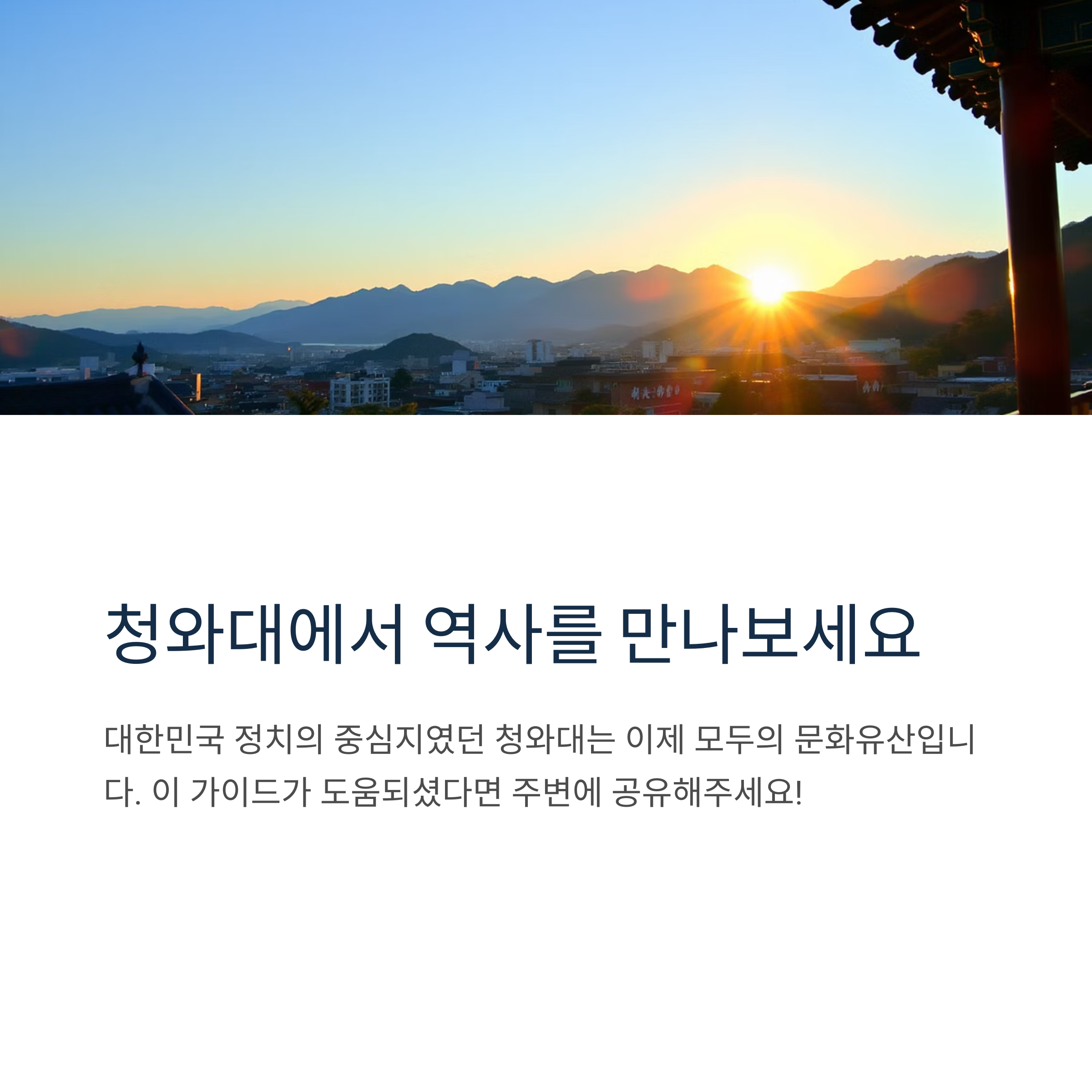 - 대한민국의 역사와 정치의 중심지였던 청와대는 이제 국민 모두가 방문할 수 있는 소중한 문화유산이 되었습니다.