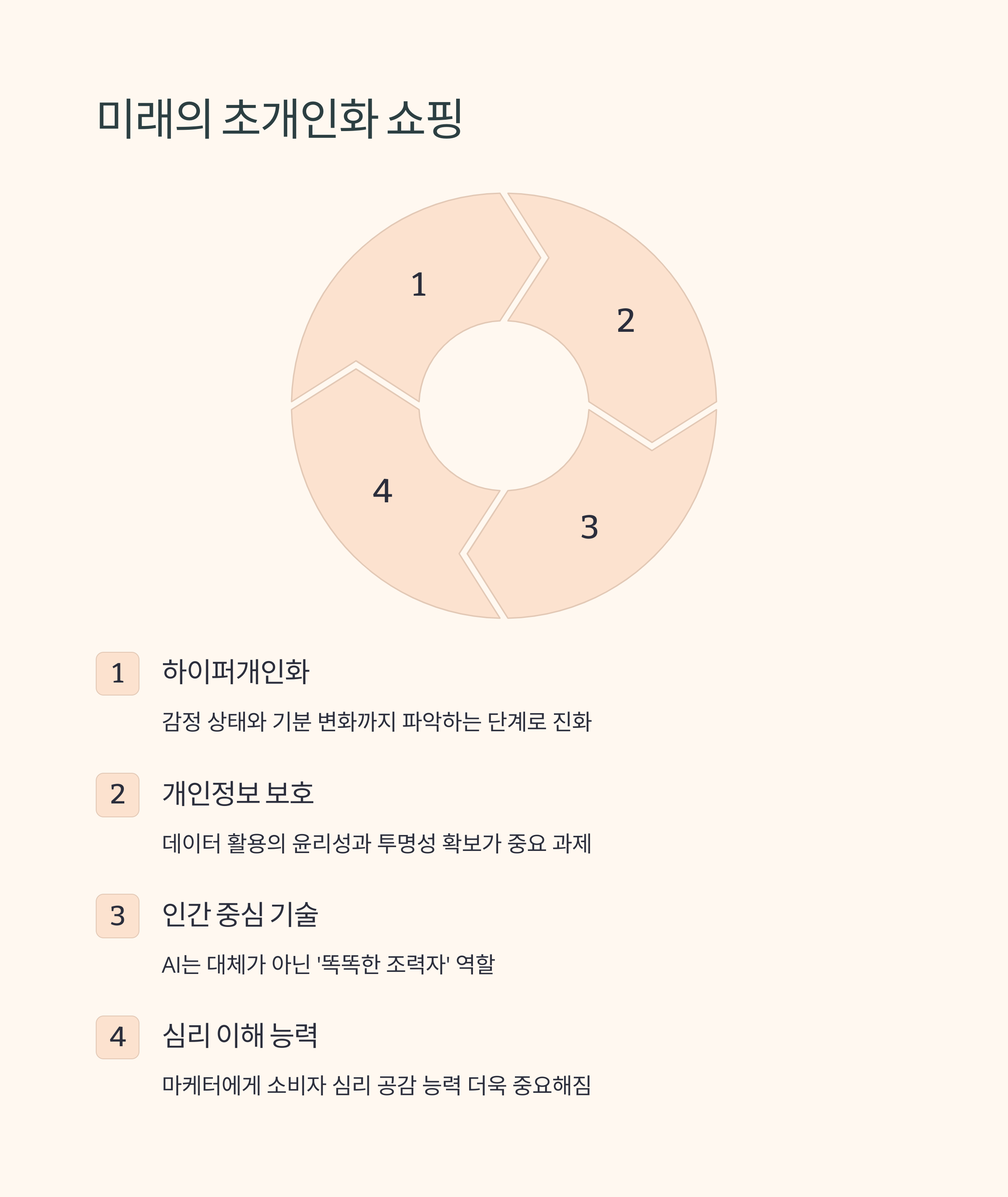 - 미래 전망과 과제는? 👉 고객의 심리 상태까지 반영하는 '하이퍼개인화'로 진화할 것이며, 개인정보 보호와 데이터 활용의 윤리성 확보가 중요한 과제예요.