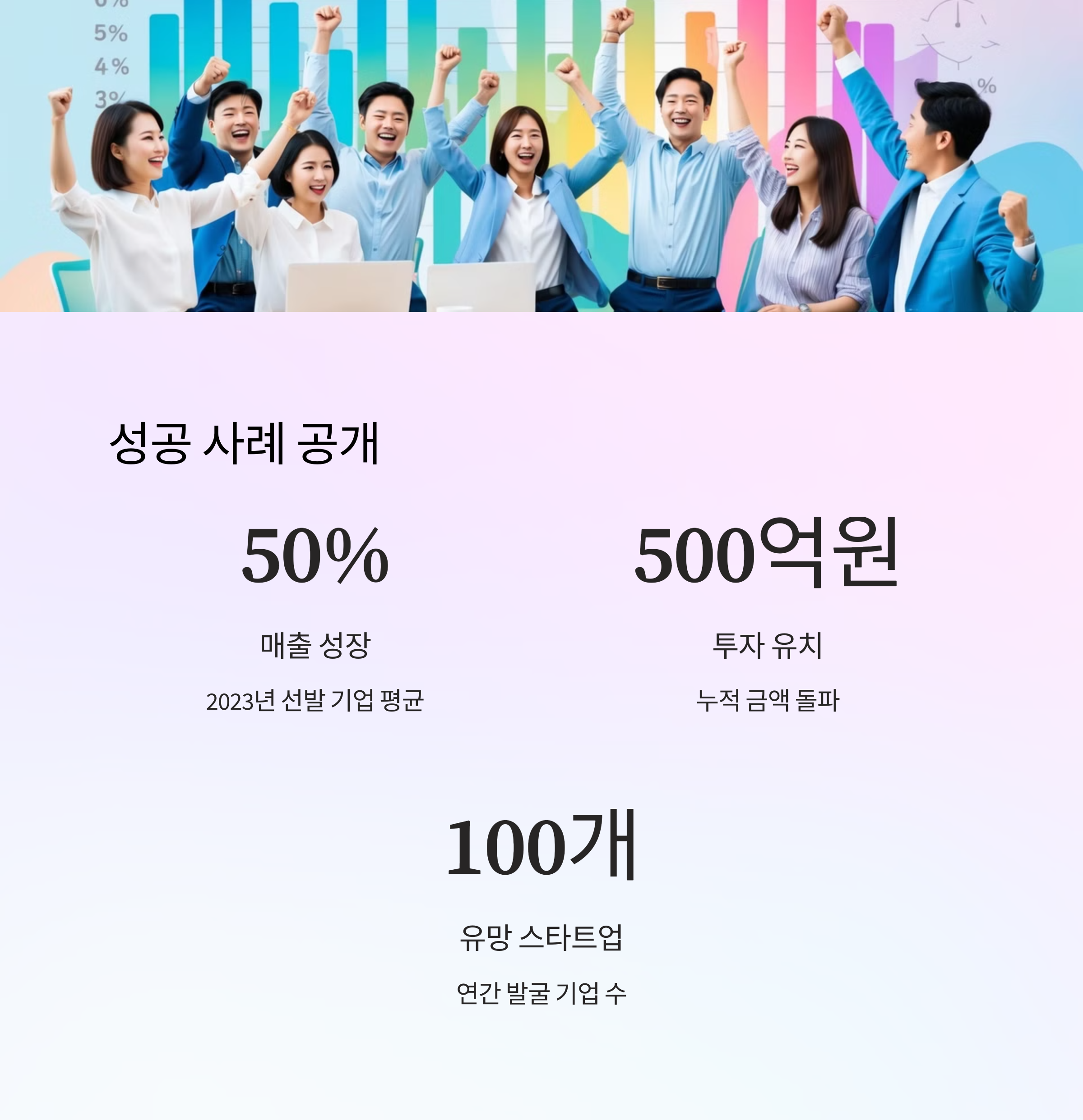 단순 자금 지원을 넘어 사업 성장을 돕는 데 집중합니다. 연매출 100억 원 돌파, 해외 진출 성공 사례도 많습니다. 2024년 850명 지원, 2025년에도 계속됩니다.