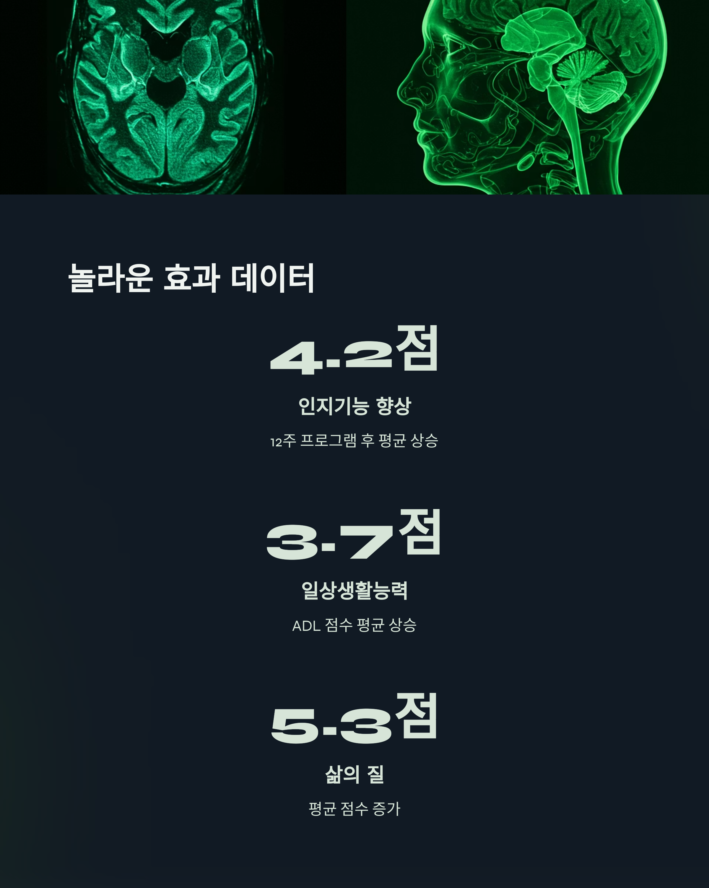 - 12주 프로그램 후 인지 기능 4.2점 향상.