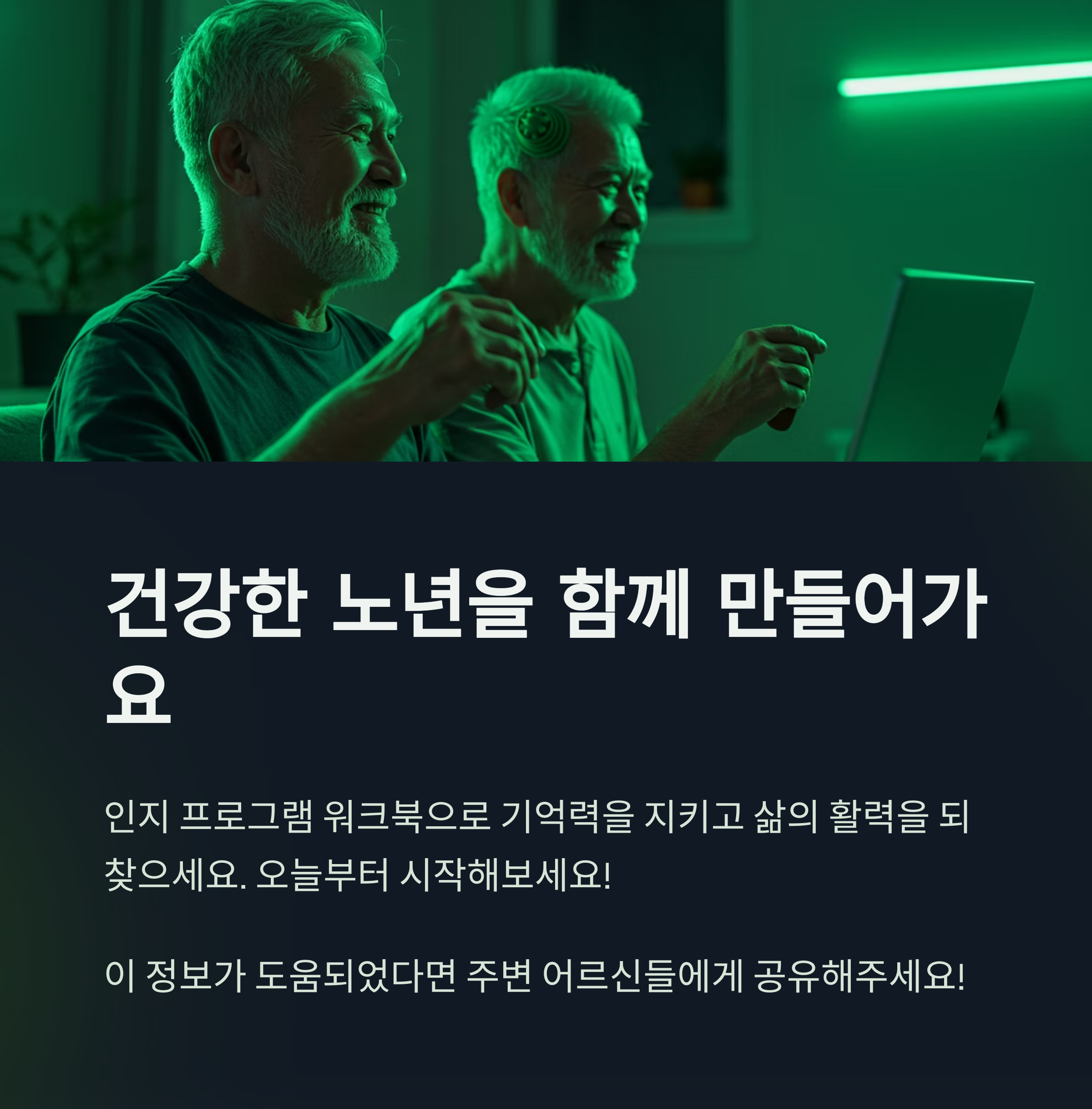 오늘 인지 프로그램 워크북에 대해 함께 알아봤는데 어떠셨나요? 저는 이 워크북이 단순히 '치매를 예방하는 도구'를 넘어, 어르신들이 즐겁게 인지 활동을 하면서 삶의 활력을 되찾고, 가족들과도 더 행복한 시간을 보낼 수 있도록 돕는 따뜻한 매개체라고 생각해요.