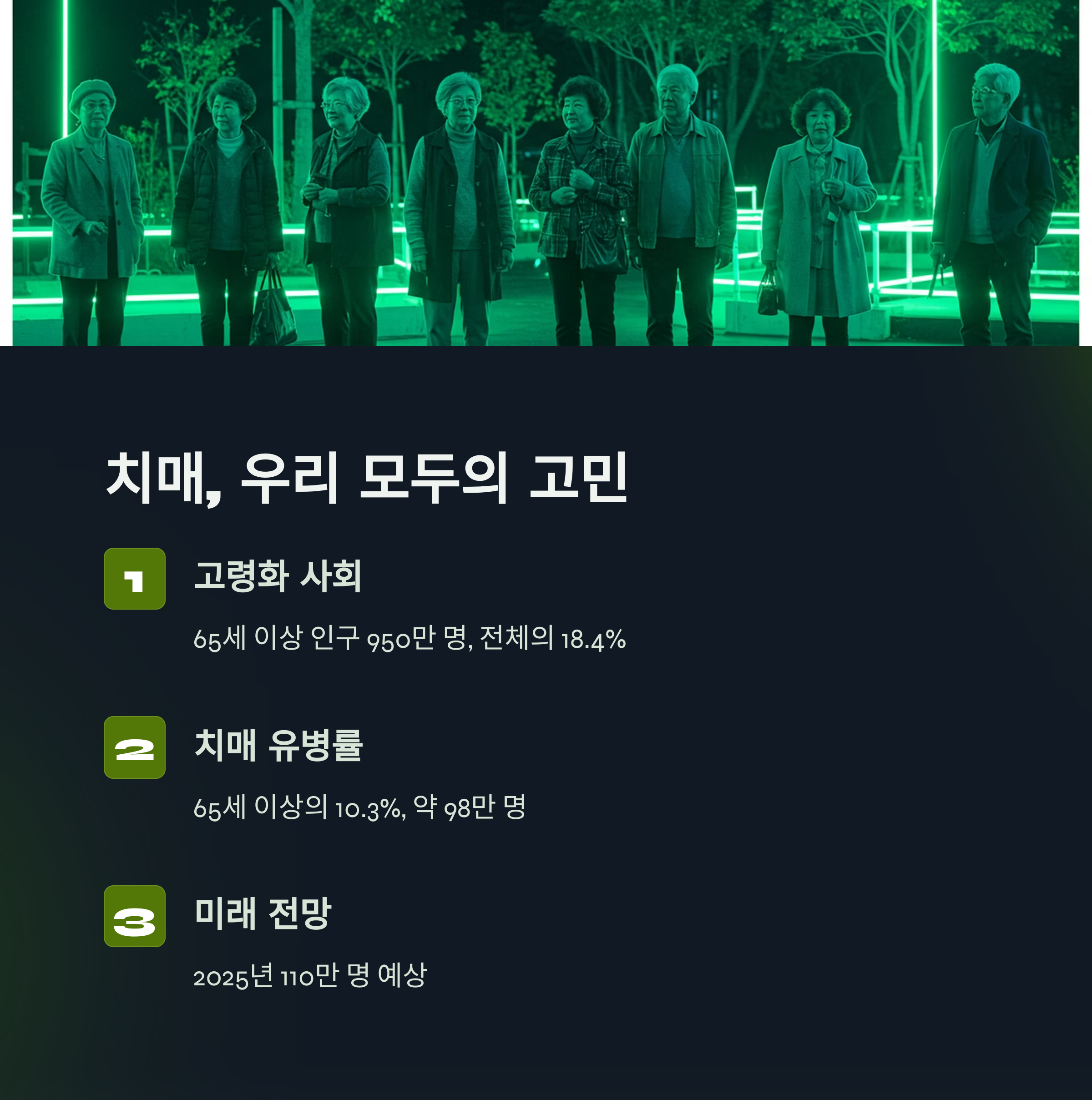 - 고령화 사회에서 치매 유병률 증가 (2025년 110만 명 예측).
