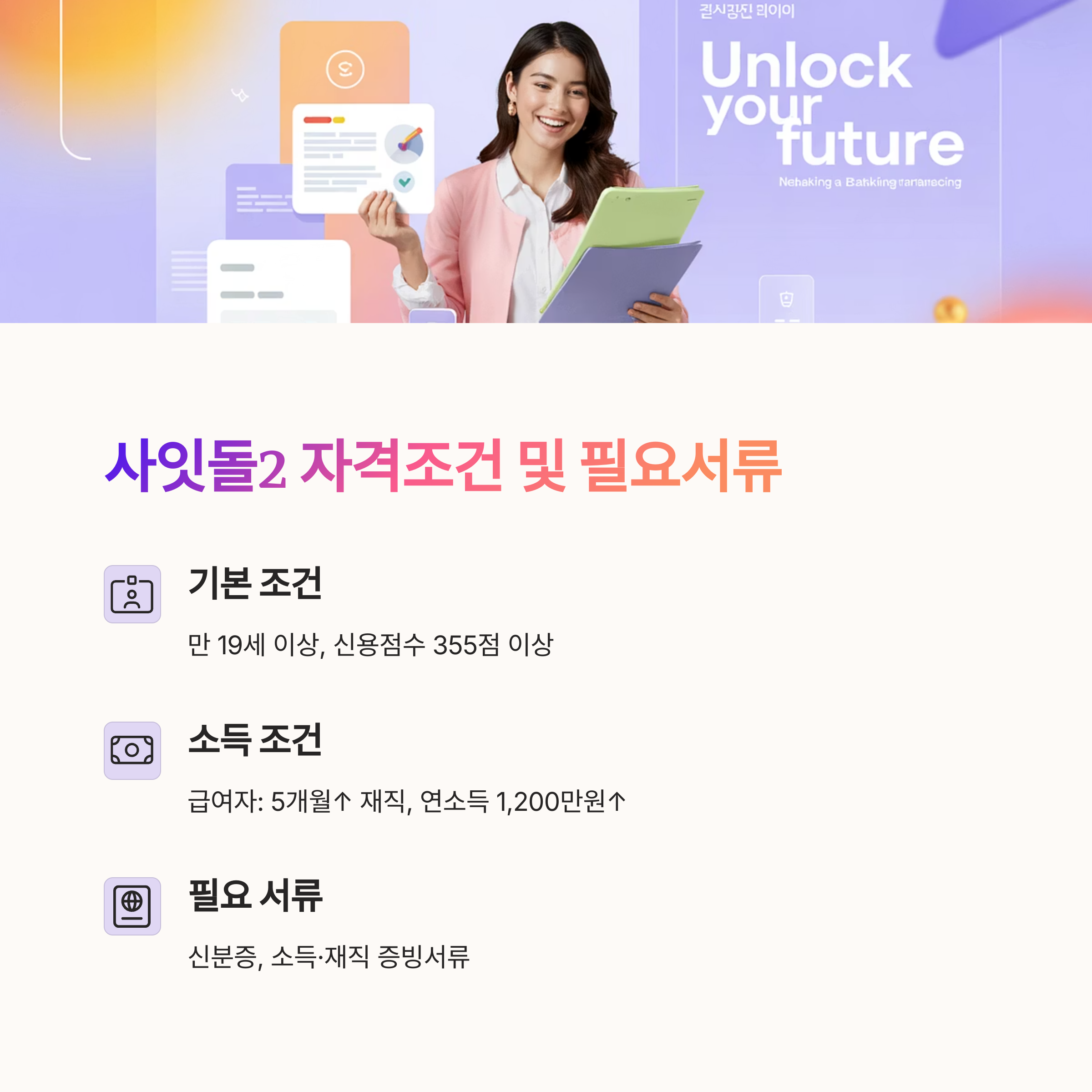 2. 사잇돌2 신용대출 자격조건 및 필요서류