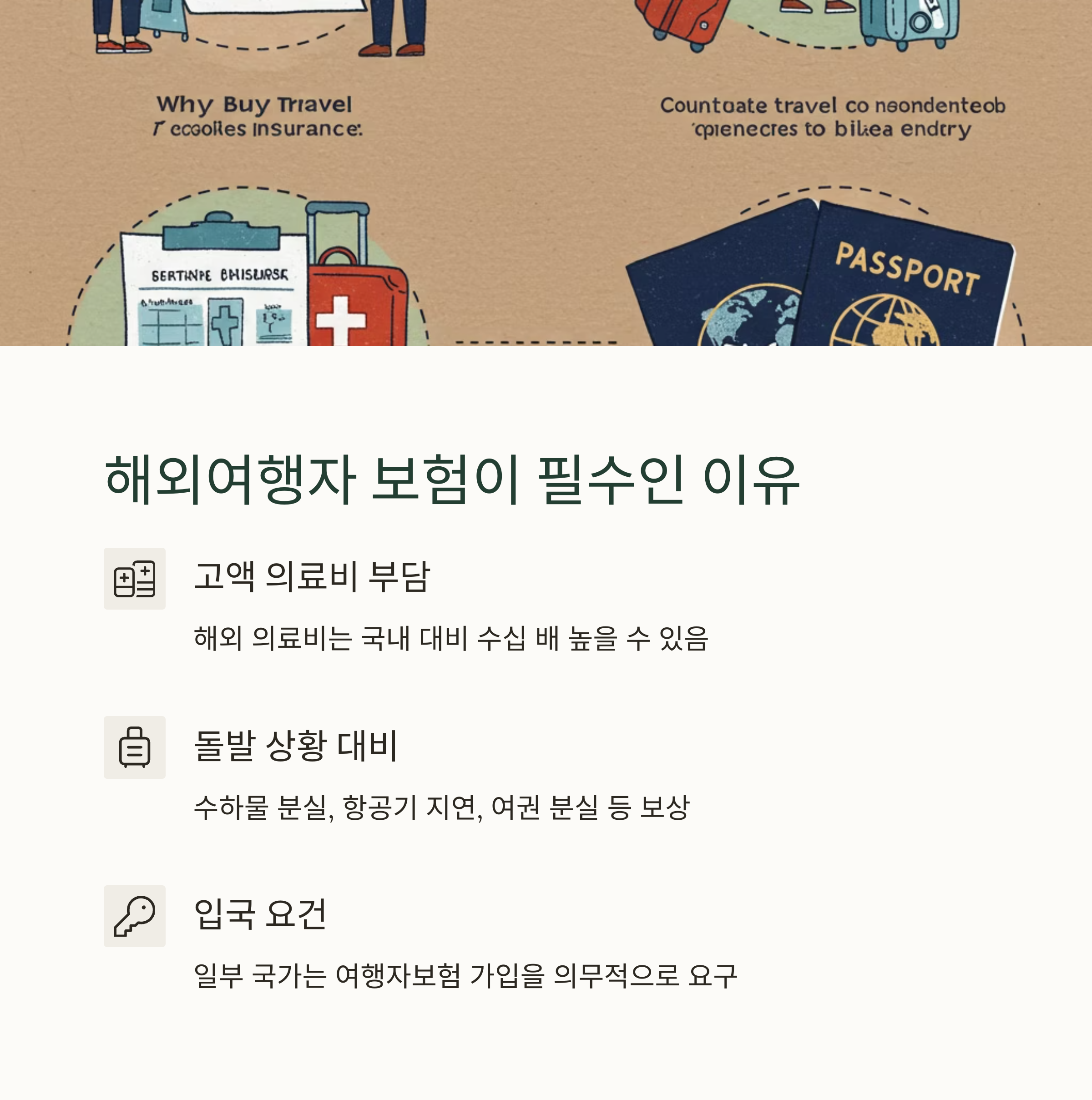 - ✔ 해외여행자 보험, 선택 아닌 필수인 이유: 해외 의료비와 돌발 상황 대비