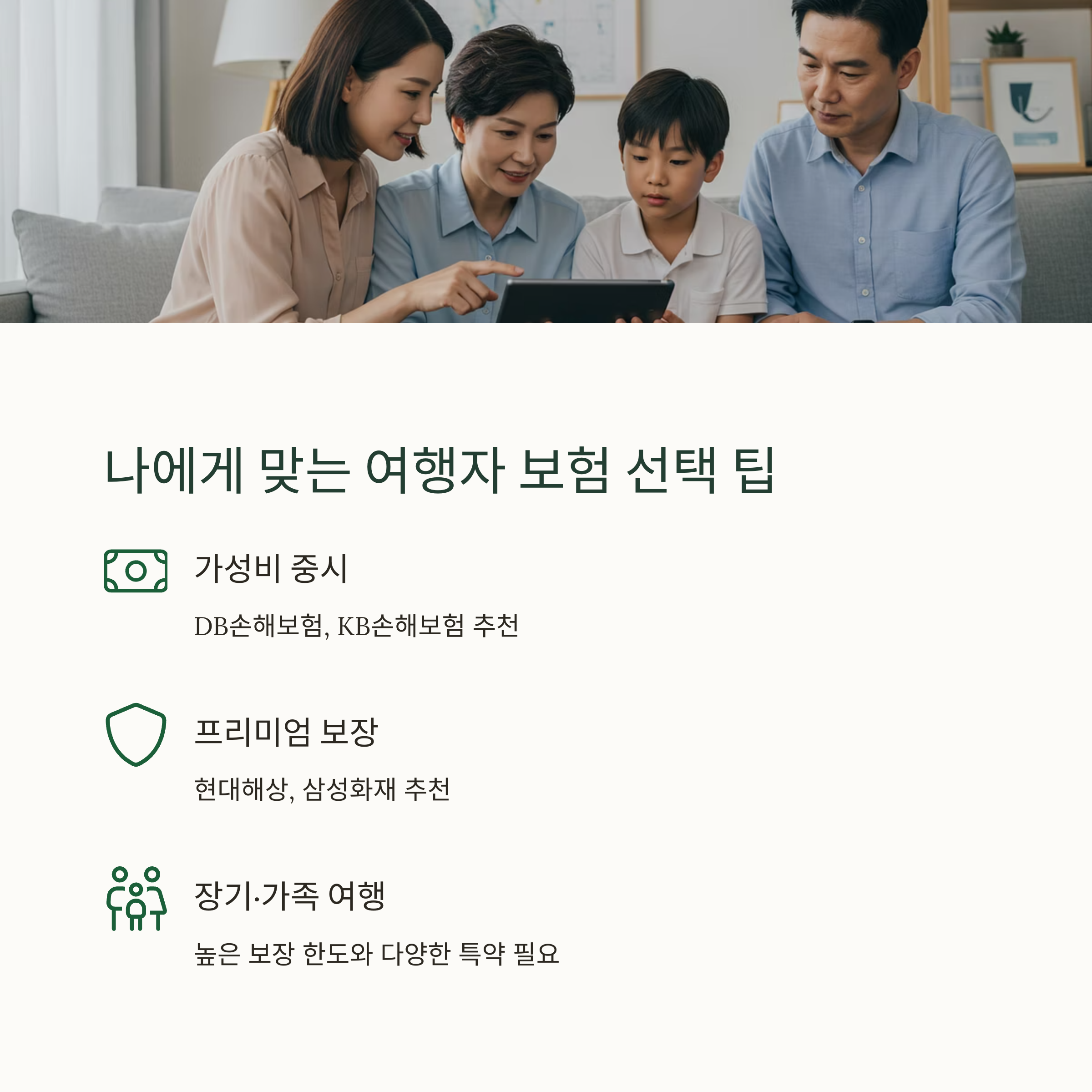 - ✔ 장기·가족 여행객: 더 높은 보장 한도와 다양한 특약이 필요한 경우, 삼성화재와 현대해상이 유리합니다.