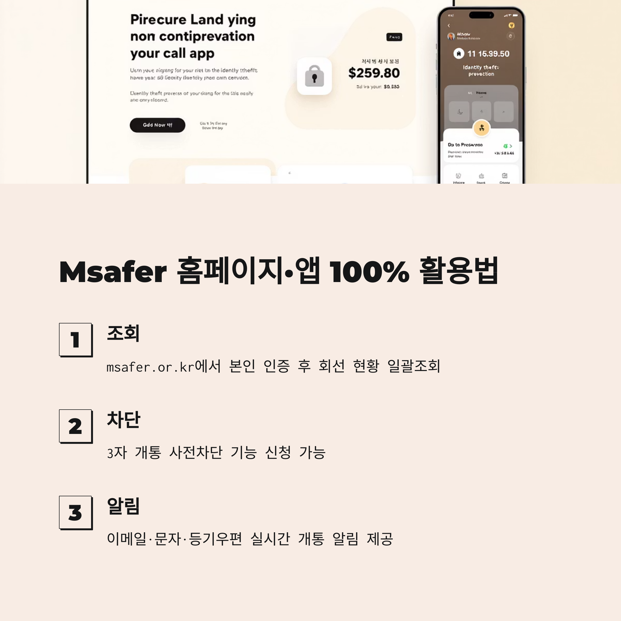 Msafer는 2025년부터 웹사이트와 모바일 앱 모두에서 서비스를 제공합니다. 특히 통합된 디지털 신원 보호 기능이 강화되었습니다.