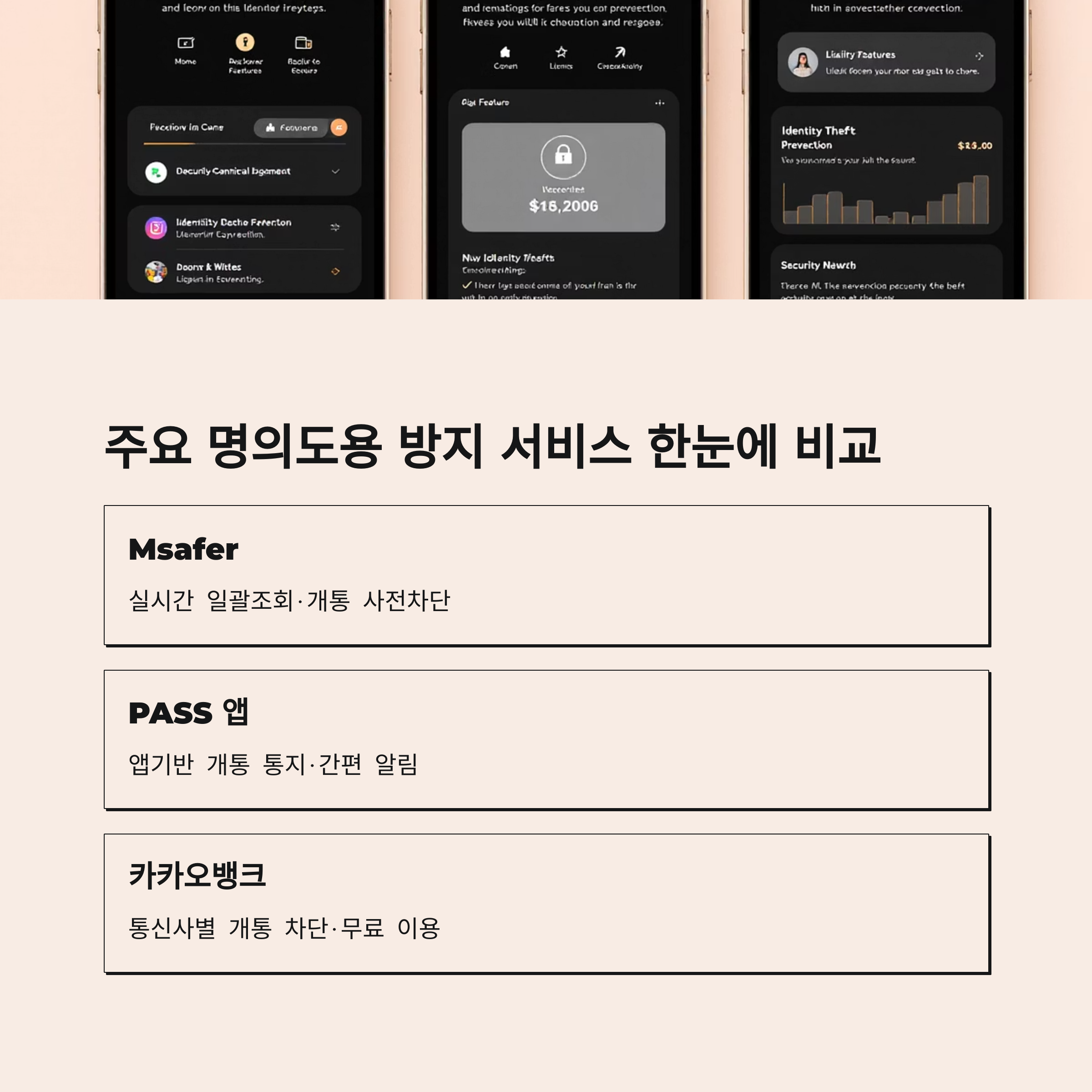 2. 주요 명의도용 방지 서비스 비교 및 특징