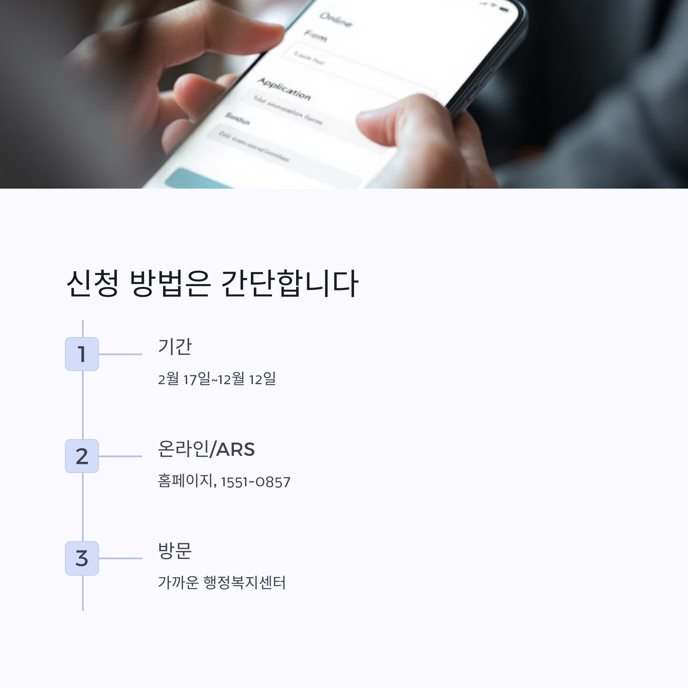 | 전화 신청 | ARS 1551-0857로 신청 |
