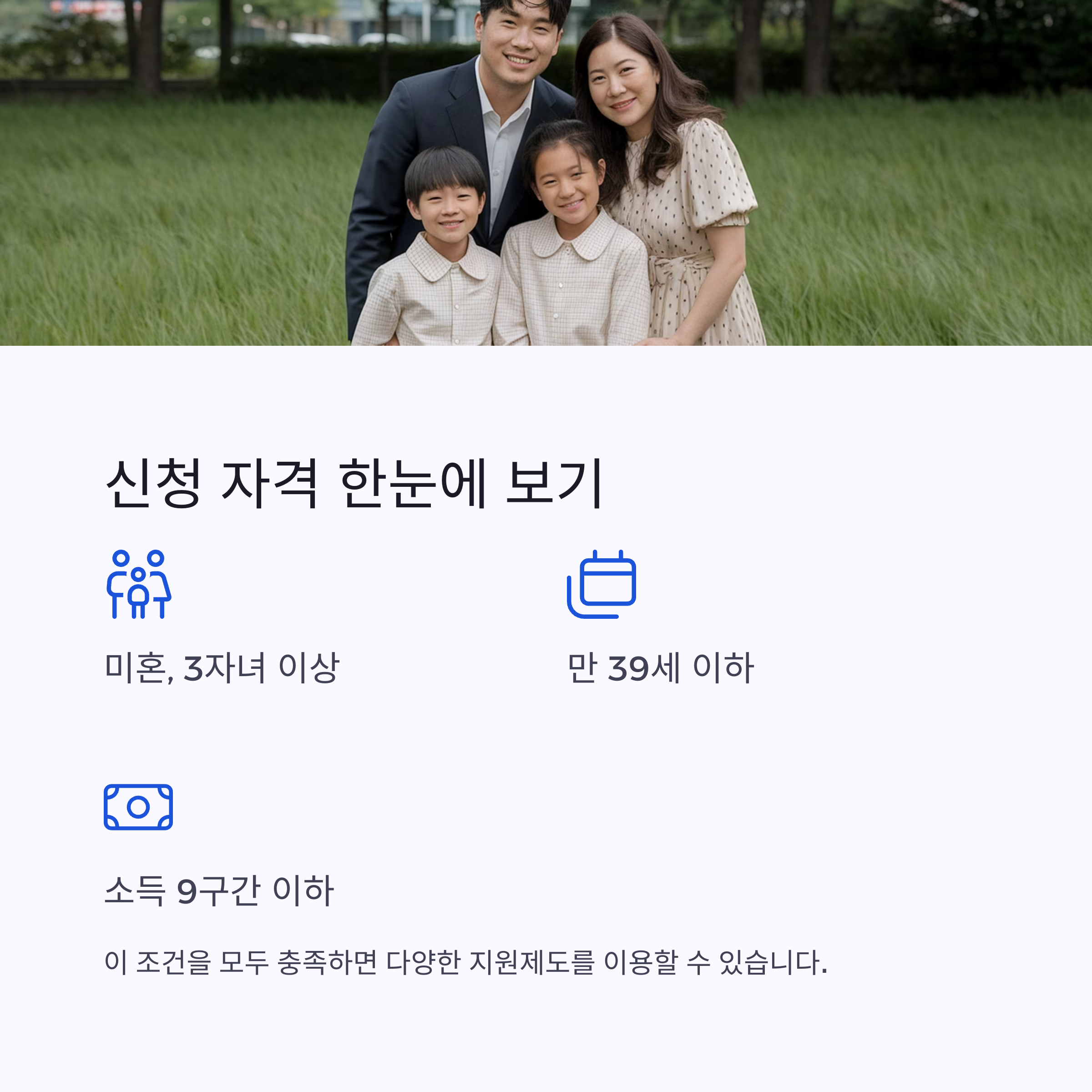 - 지원 자격 확인하기 - 자녀 수, 소득구간, 연령 등 자격요건 확인