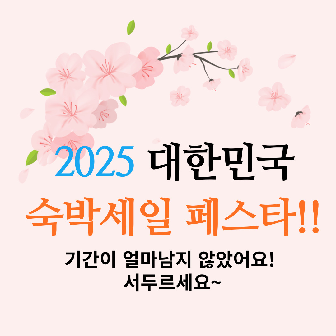 빨리 서두르시길 바랍니다. 2025년에도 대한민국 숙박세일 페스타가 찾아옵니다!