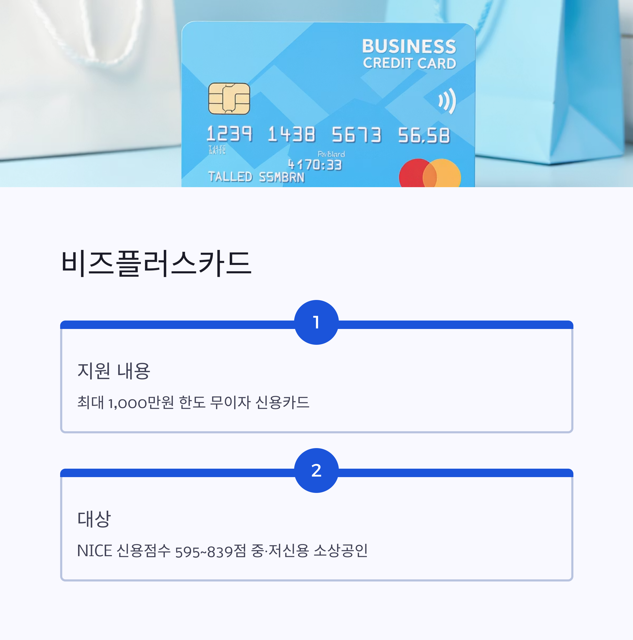 4. 비즈플러스카드: 중·저신용 소상공인을 위한 무이자 운영자금