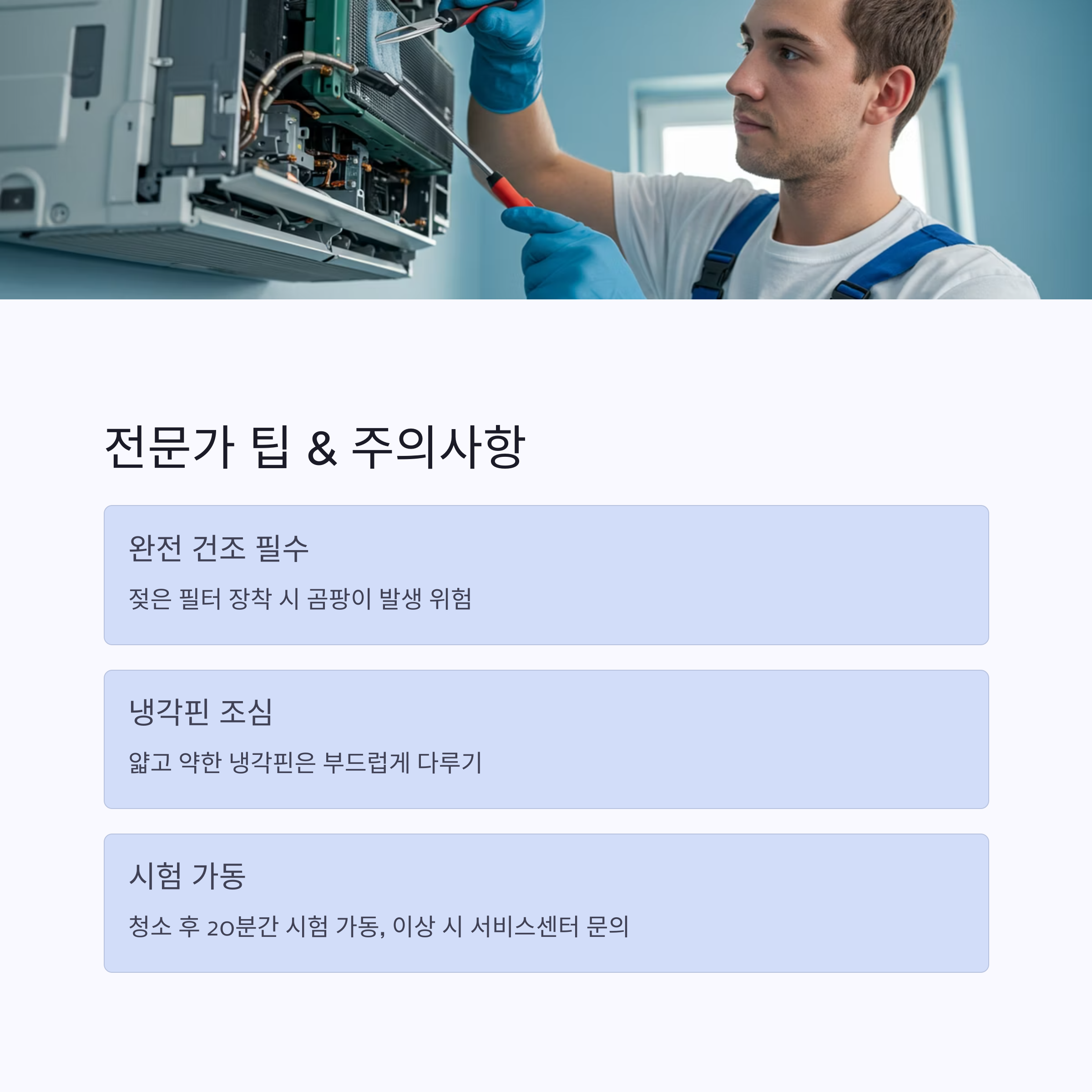 셀프 청소도 좋지만, 몇 가지 전문가 팁과 주의사항을 알면 훨씬 더 안전하고 효과적으로 에어컨을 관리할 수 있어요. 저도 이 팁들 덕분에 시행착오를 줄일 수 있었답니다.