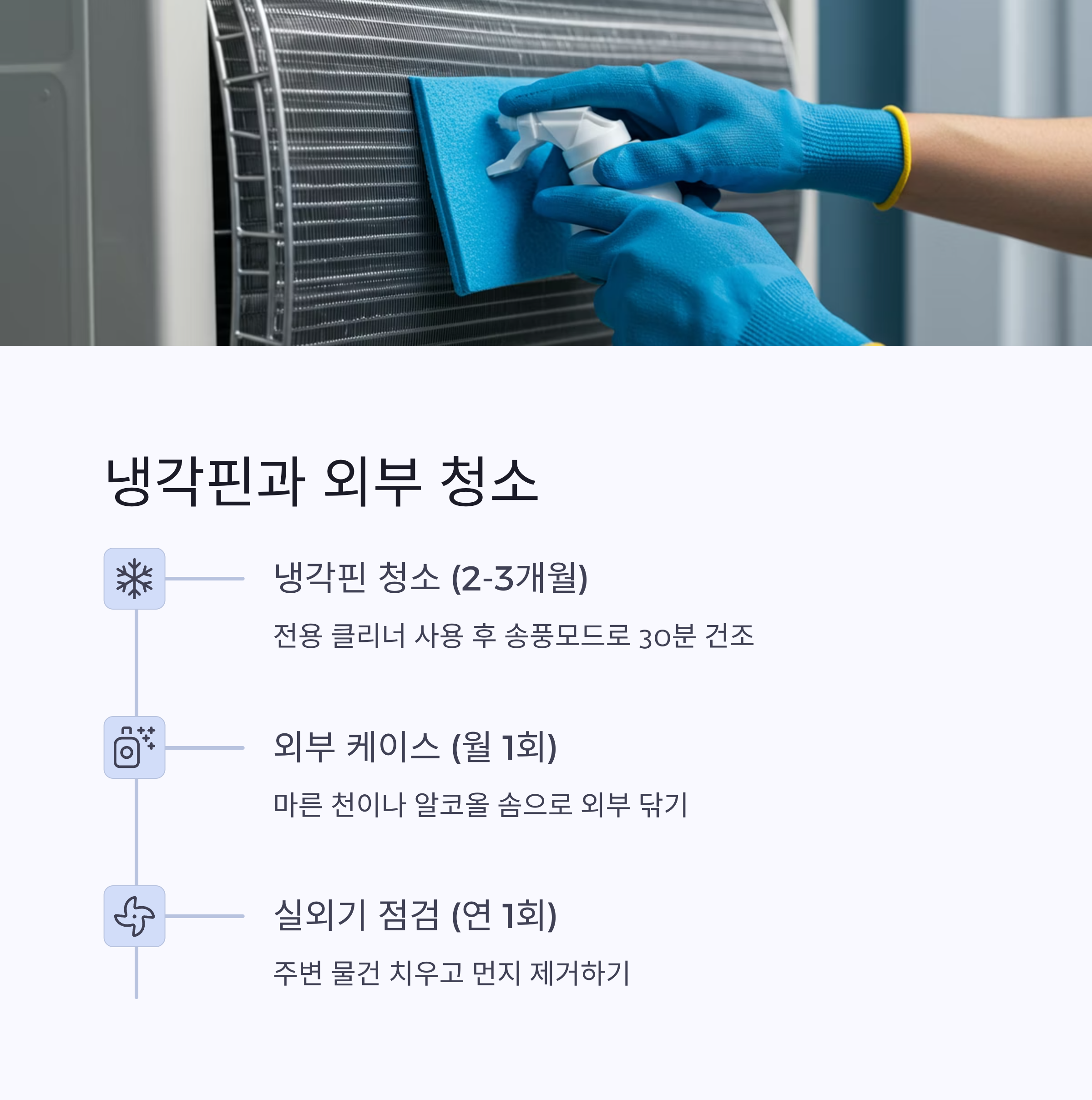 2) 냉각핀(열교환기) 청소 (주기: 2~3개월에 한 번 권장) ❄️