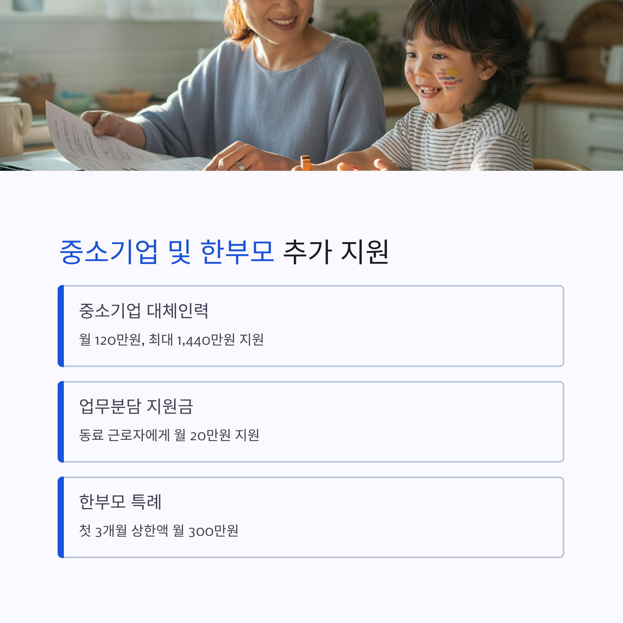 중소기업 및 한부모 근로자를 위한 추가 지원!