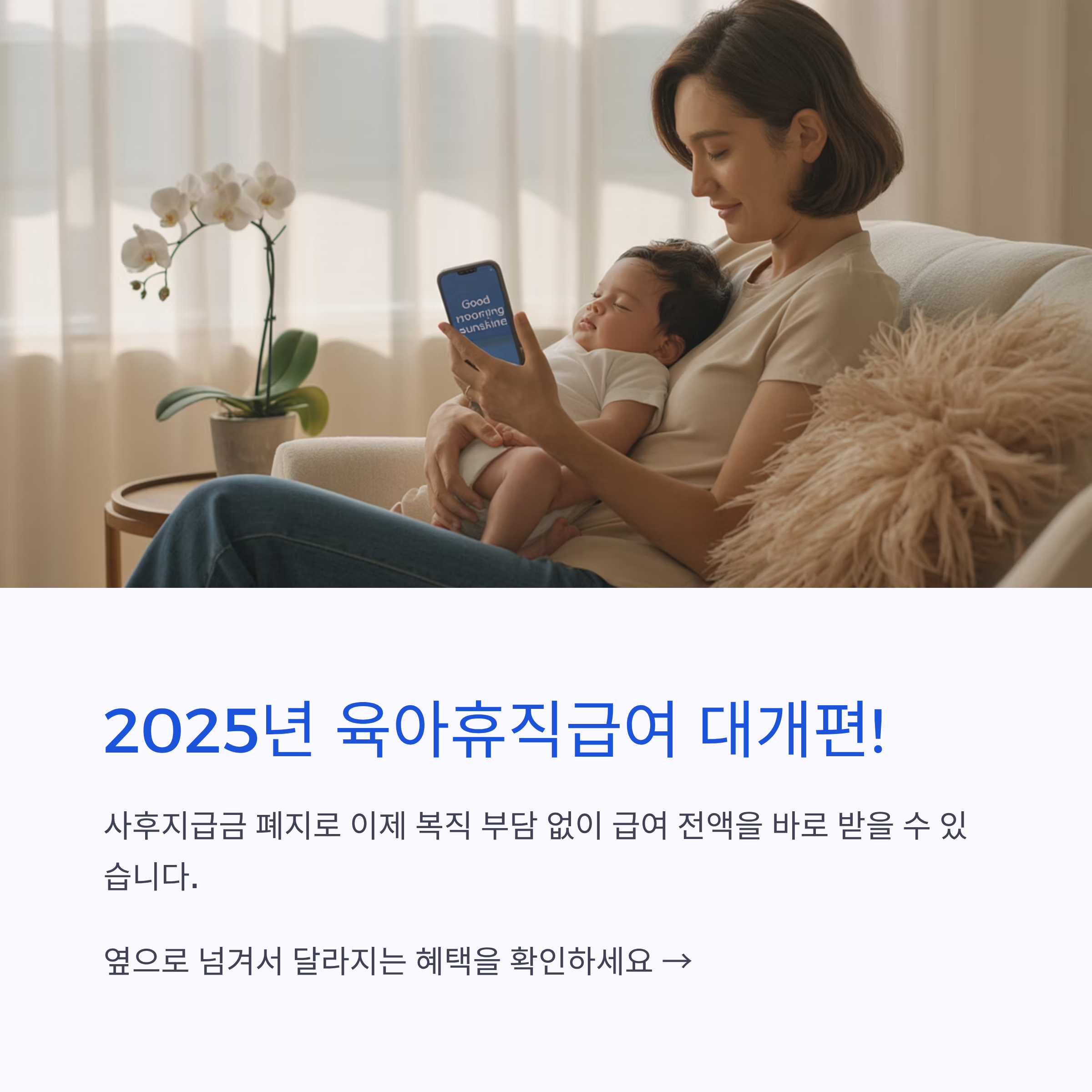 안녕하세요! 바쁜 일상 속에서도 우리 아이와의 소중한 시간을 꿈꾸는 부모님들, 혹은 예비 부모님들께 희소식을 전해드립니다. 바로 2025년부터 확 달라지는 육아휴직급여 제도 이야기인데요. 특히 많은 분들이 기다려왔던 '사후지급금 폐지' 소식은 정말 반가운 소식입니다. 그동안 육아휴직급여의 25%가 복직 후에야 지급되어 심리적, 경제적 부담이 컸던 것이 사실인데요. 이제 더는 걱정 없이 육아휴직 기간 중 급여 전액을 바로 받을 수 있게 됩니다! 오늘은 2025년 육아휴직급여가 어떻게 변화하고, 이 변화가 여러분께 어떤 실질 혜택을 가져다줄지 꼼꼼하게 총정리해 드리려고 해요. 육아휴직 및 출산휴가 고민 중이시라면, 이 글이 큰 도움이 될 거예요!