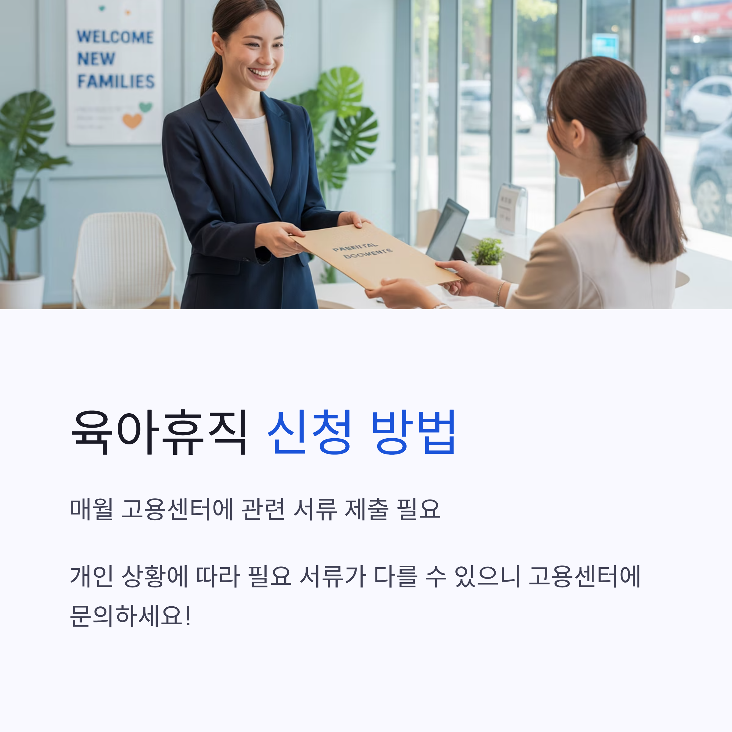 ✅ 육아휴직급여 신청 방법은 매월 고용센터에 관련 서류를 제출해야 합니다. 급여 조건 및 필요 서류는 개인 상황에 따라 다를 수 있으므로, 반드시 고용보험 홈페이지 또는 관할 고용센터에 문의하여 정확한 정보를 확인하세요!