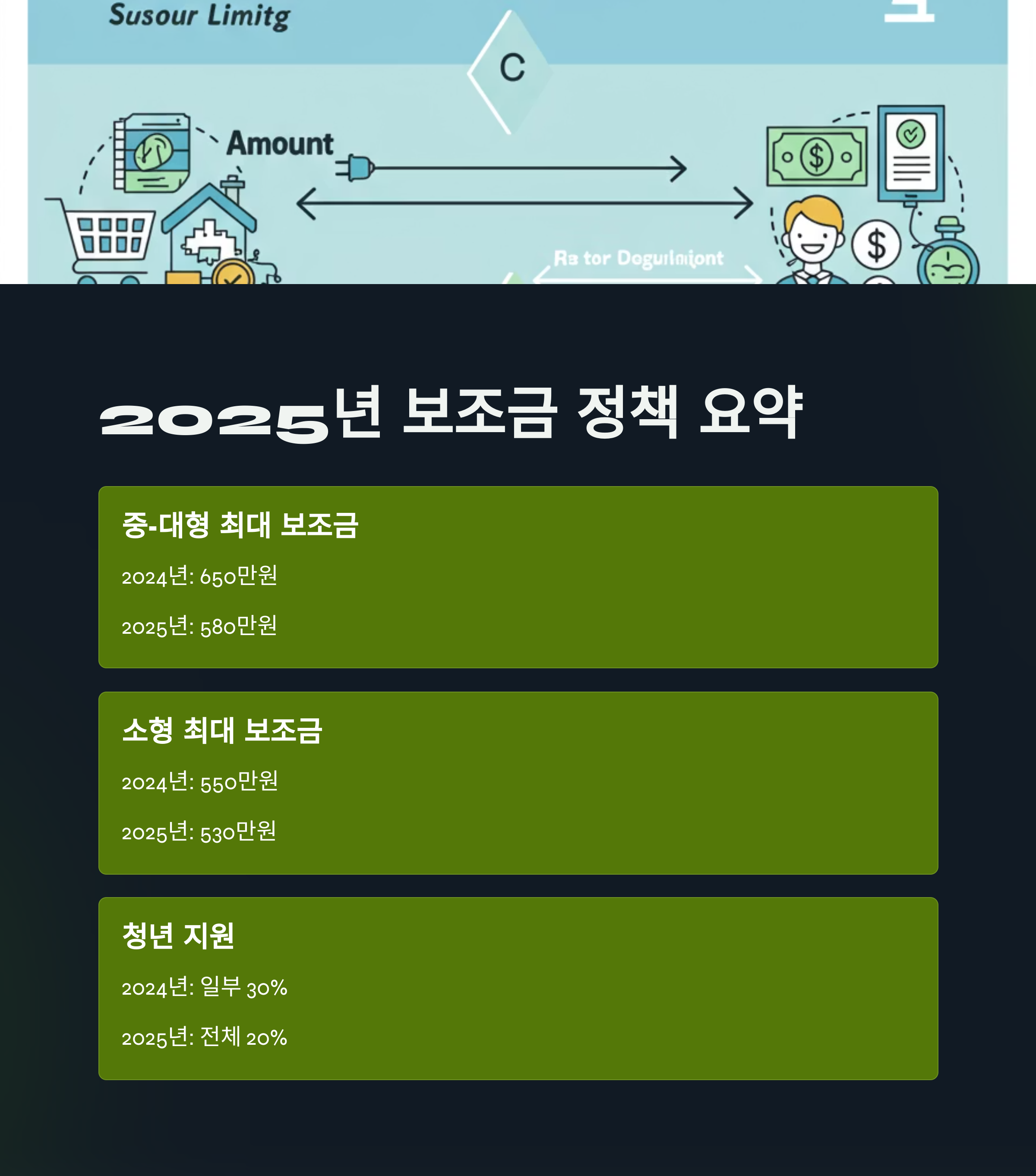 가장 중요한 보조금 액수! 2024년과 비교했을 때 소폭 감소했지만, 세부적인 기준이 더욱 까다로워졌다는 점을 알아두세요.