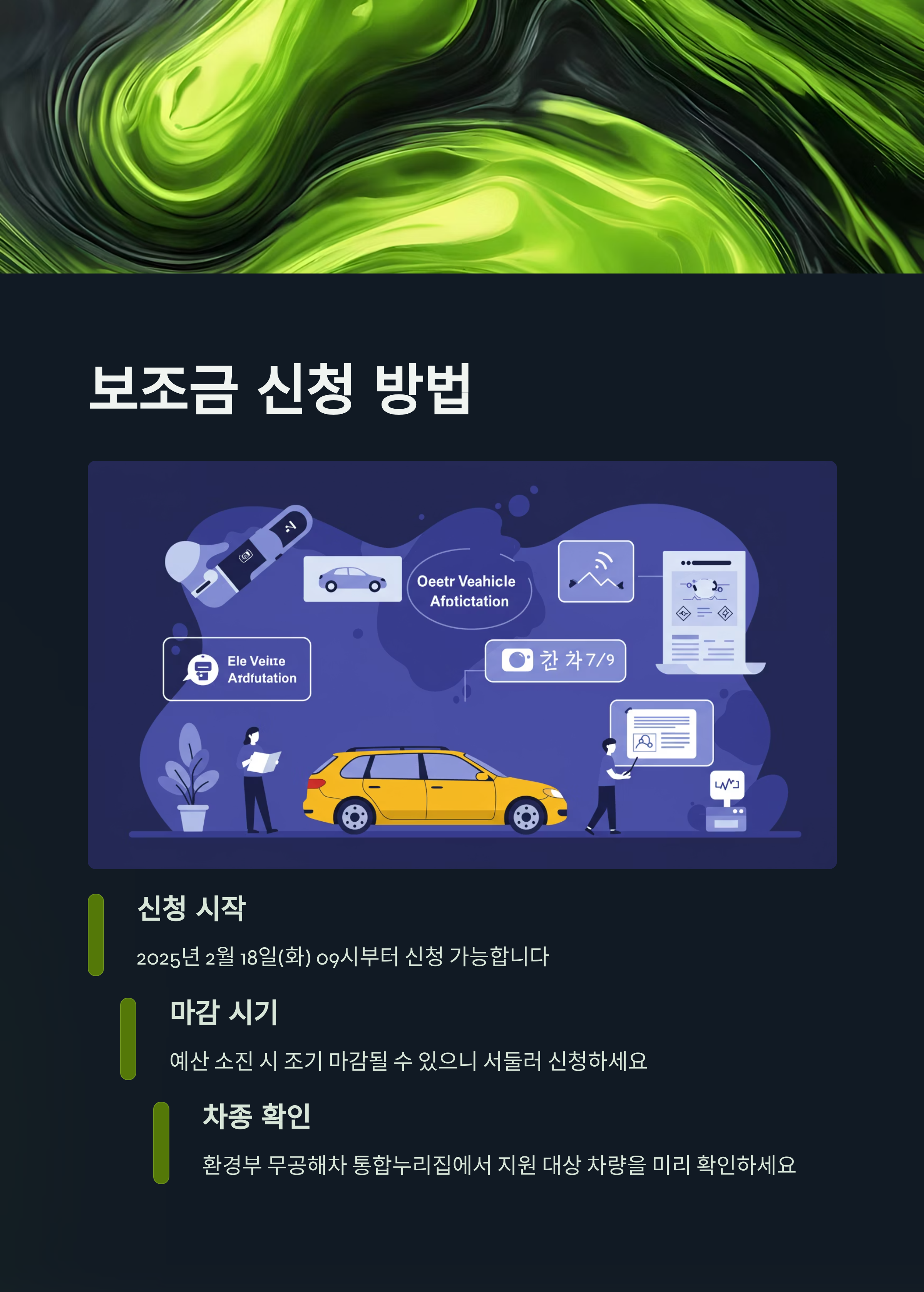 - 신청 기간: 2025년 2월 18일(화) 09시부터 시작하여 예산 소진 시 조기 마감됩니다. 인기 있는 차종은 금방 예산이 소진될 수 있으니, 구매 계획이 있다면 서두르시는 게 좋아요!