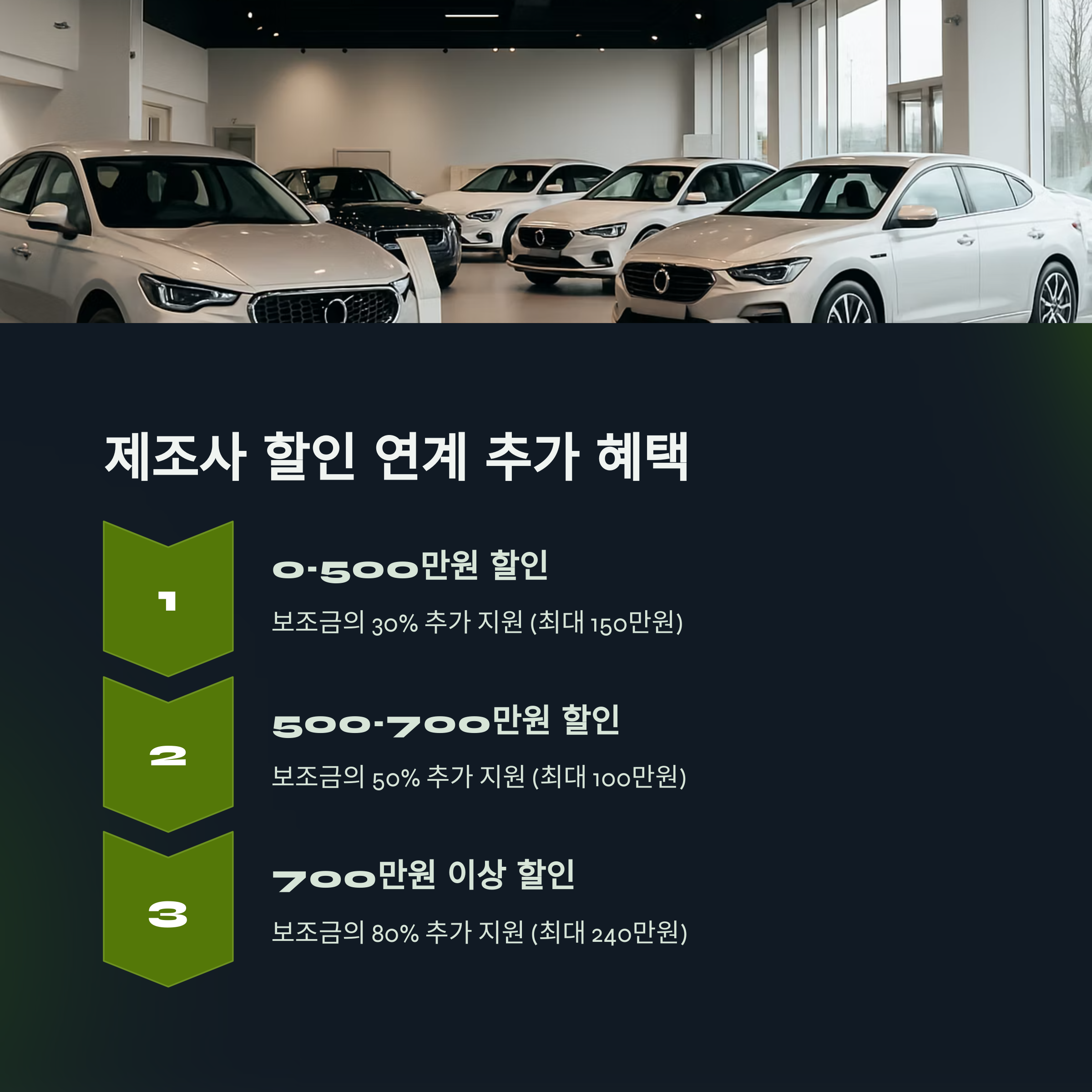 - 할인액 700만 원 이상: 보조금의 80% (최대 240만 원)