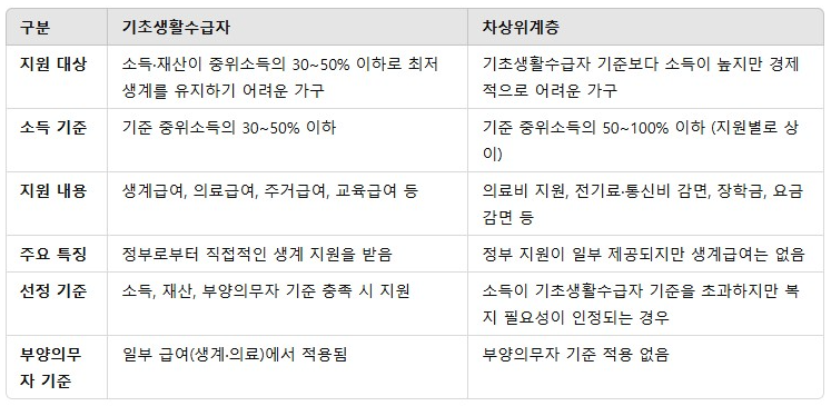 🔹 차상위계층과 기초생활수급자의 차이는?