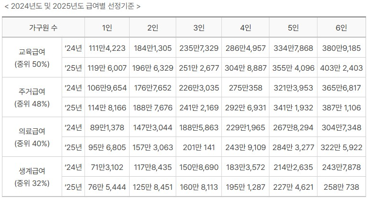 👉 기초생활수급자는 중위소득 30% 이하, 차상위계층은 50% 이하!