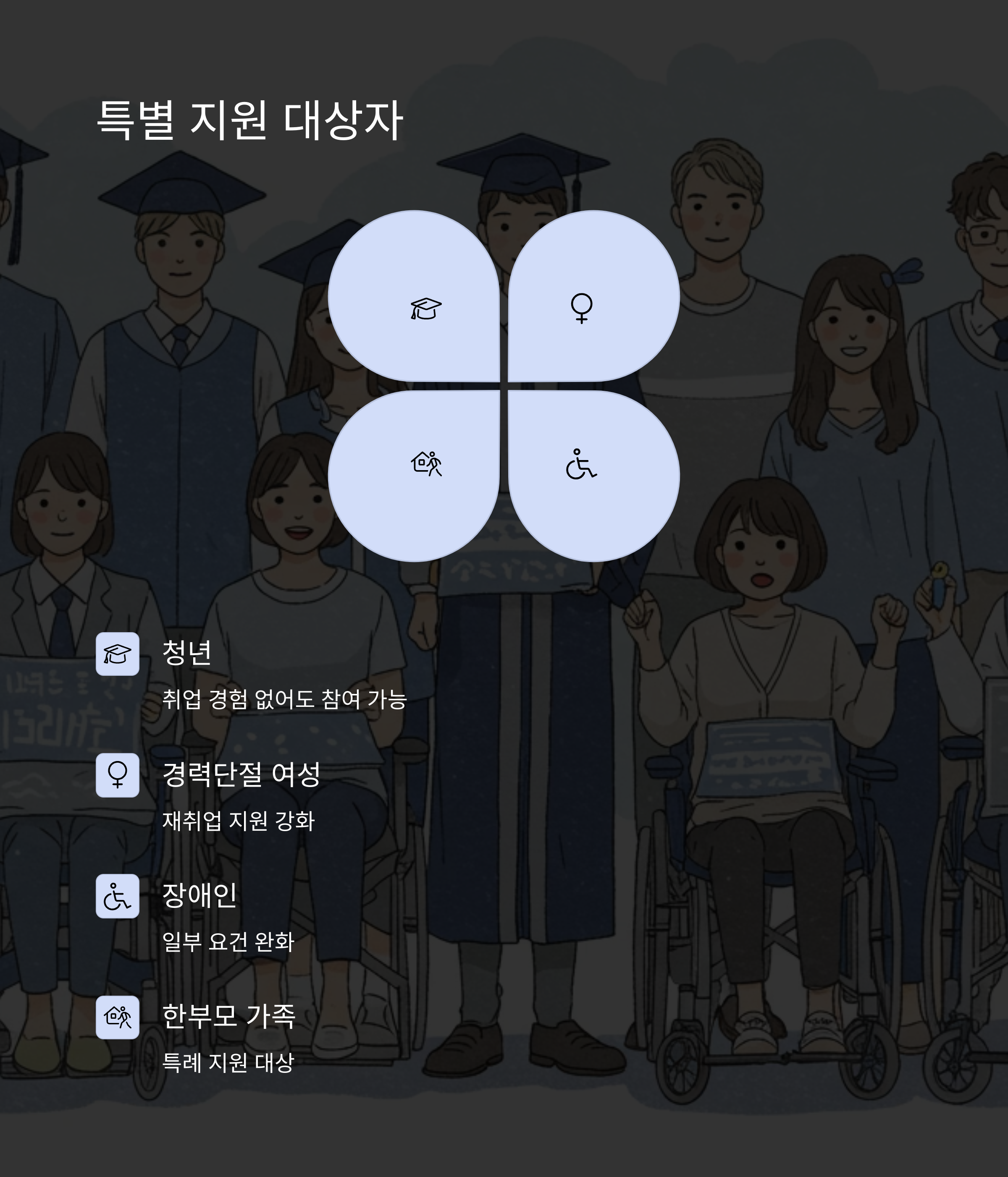 - 연령: 만 15세부터 64세까지의 구직자라면 누구나!