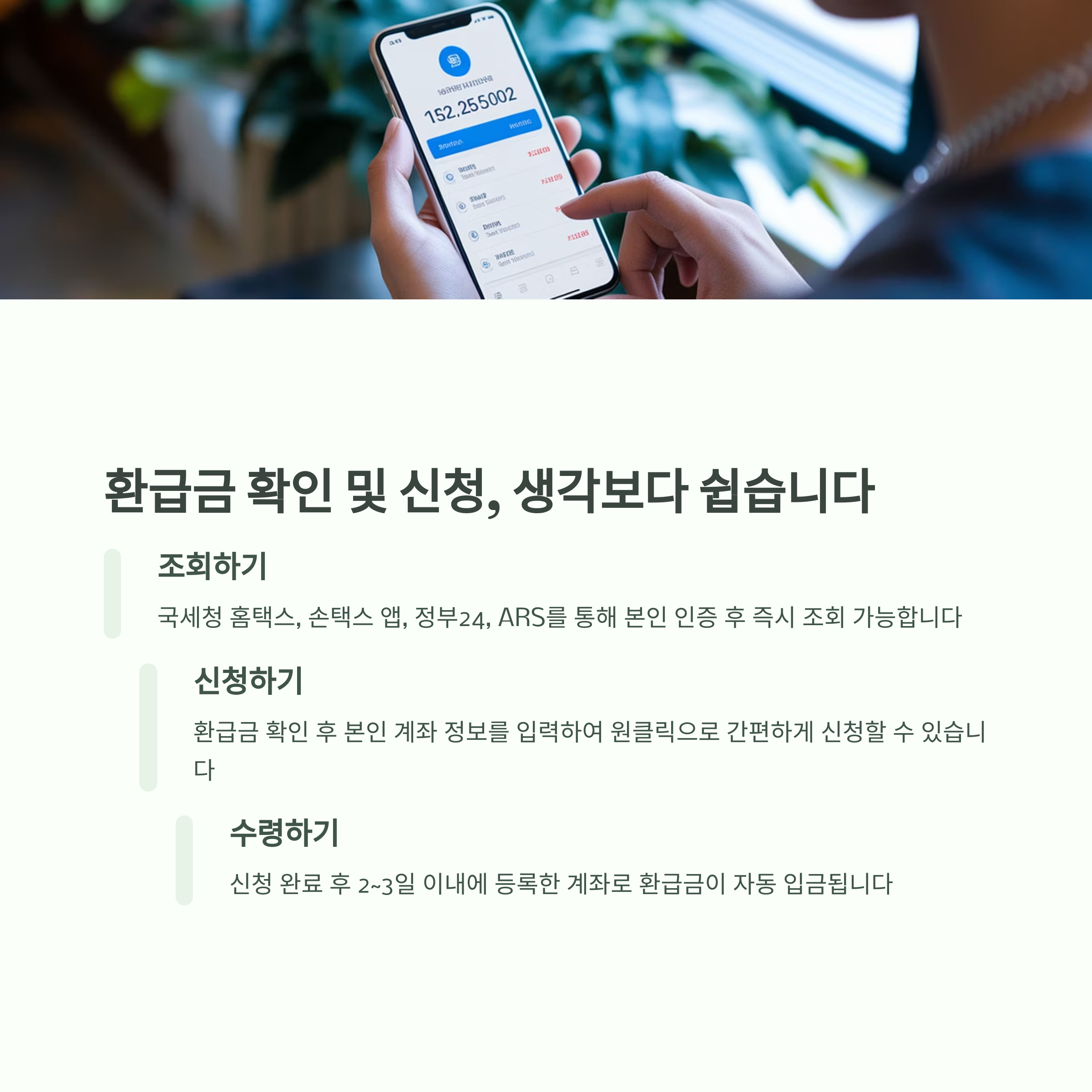스마트폰으로 간편하게 미수령 환급금 조회 및 신청이 가능합니다:
