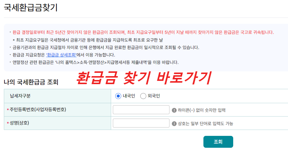 - 메뉴 → [환급금 조회] → [미수령 환급금 확인]