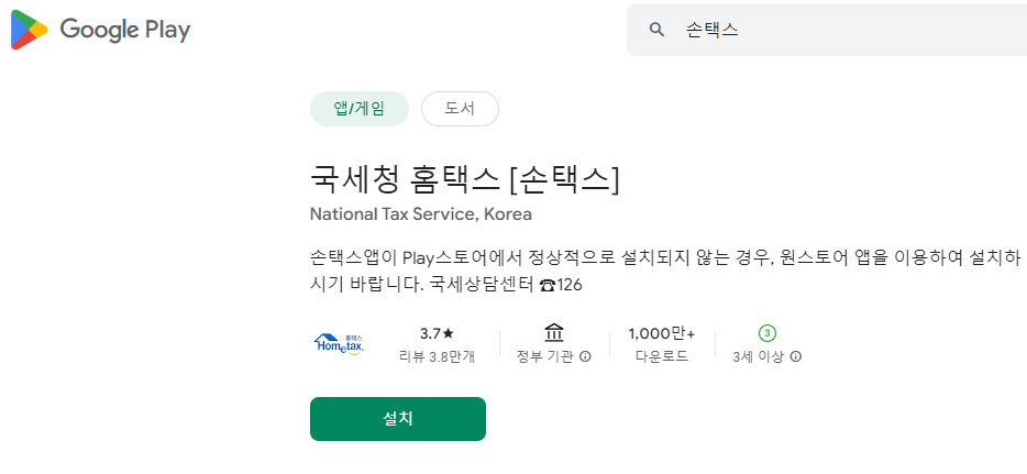 - 손택스 앱 설치 및 로그인