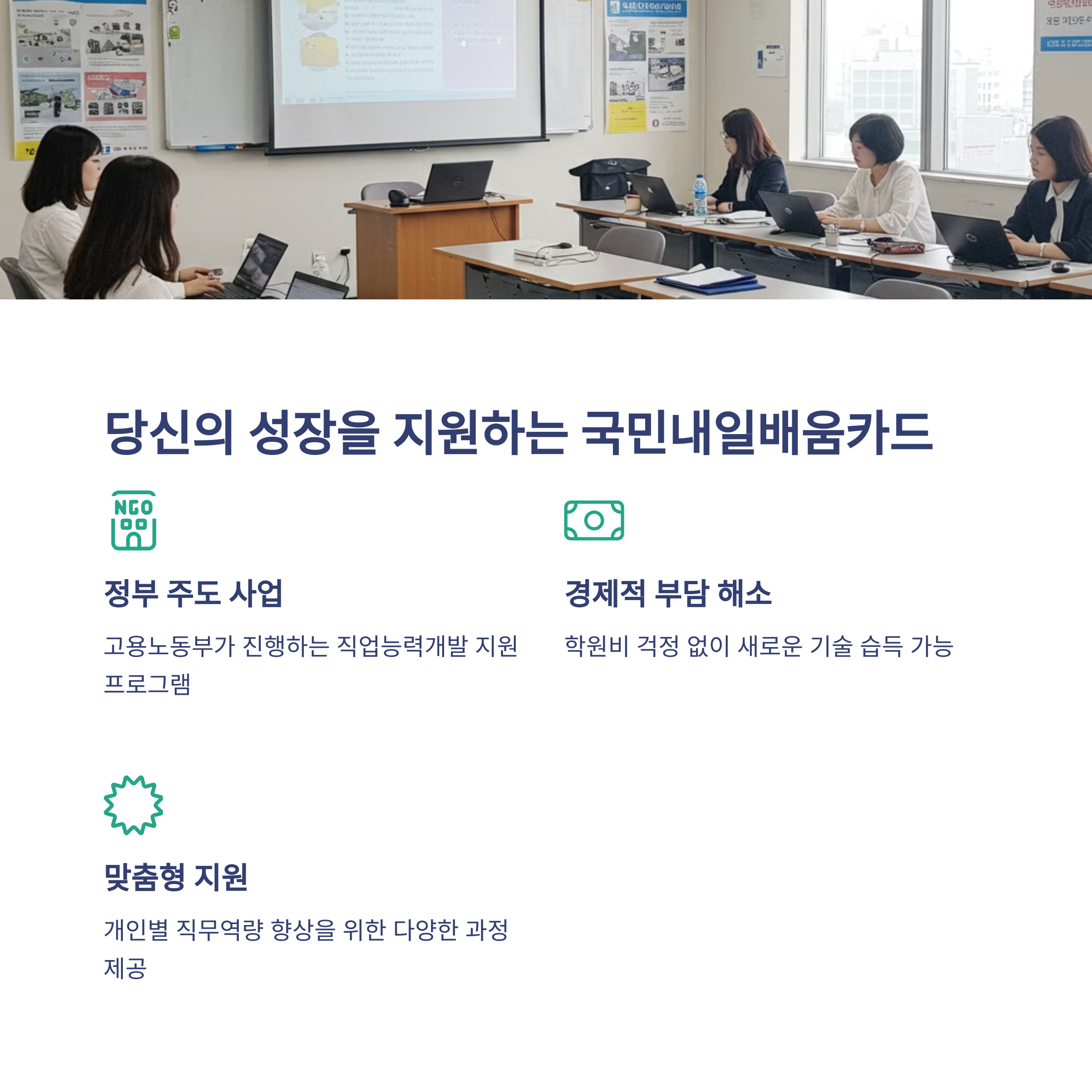 직업능력개발과 취업 준비에 필수적인 국민내일배움카드가 2025년에도 더욱 강화된 혜택으로 여러분을 기다립니다. 이 글에서는 2025년 국민내일배움카드의 모든 것을 알려드립니다. 지원자격부터 신청방법, 인기 교육과정까지 빠짐없이 정리했으니 꼭 끝까지 읽어보세요!