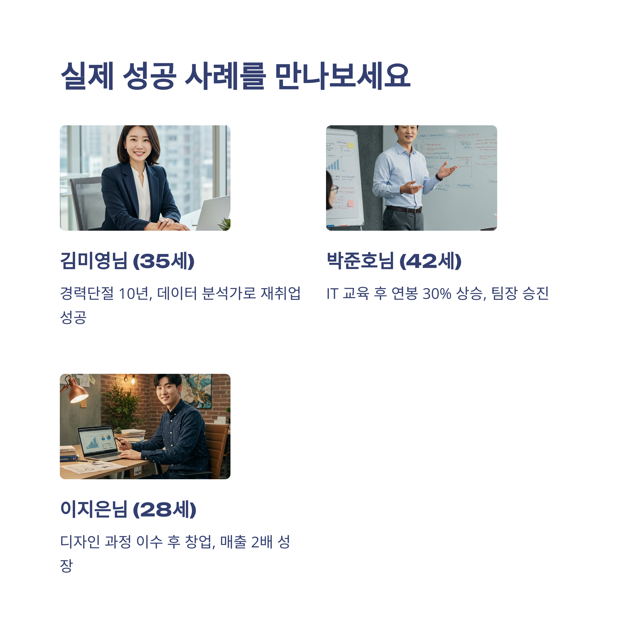 실제로 국민내일배움카드를 통해 새로운 커리어를 시작한 분들의 사례를 소개합니다. 이 성공 스토리들이 여러분에게 좋은 참고가 되길 바랍니다.
