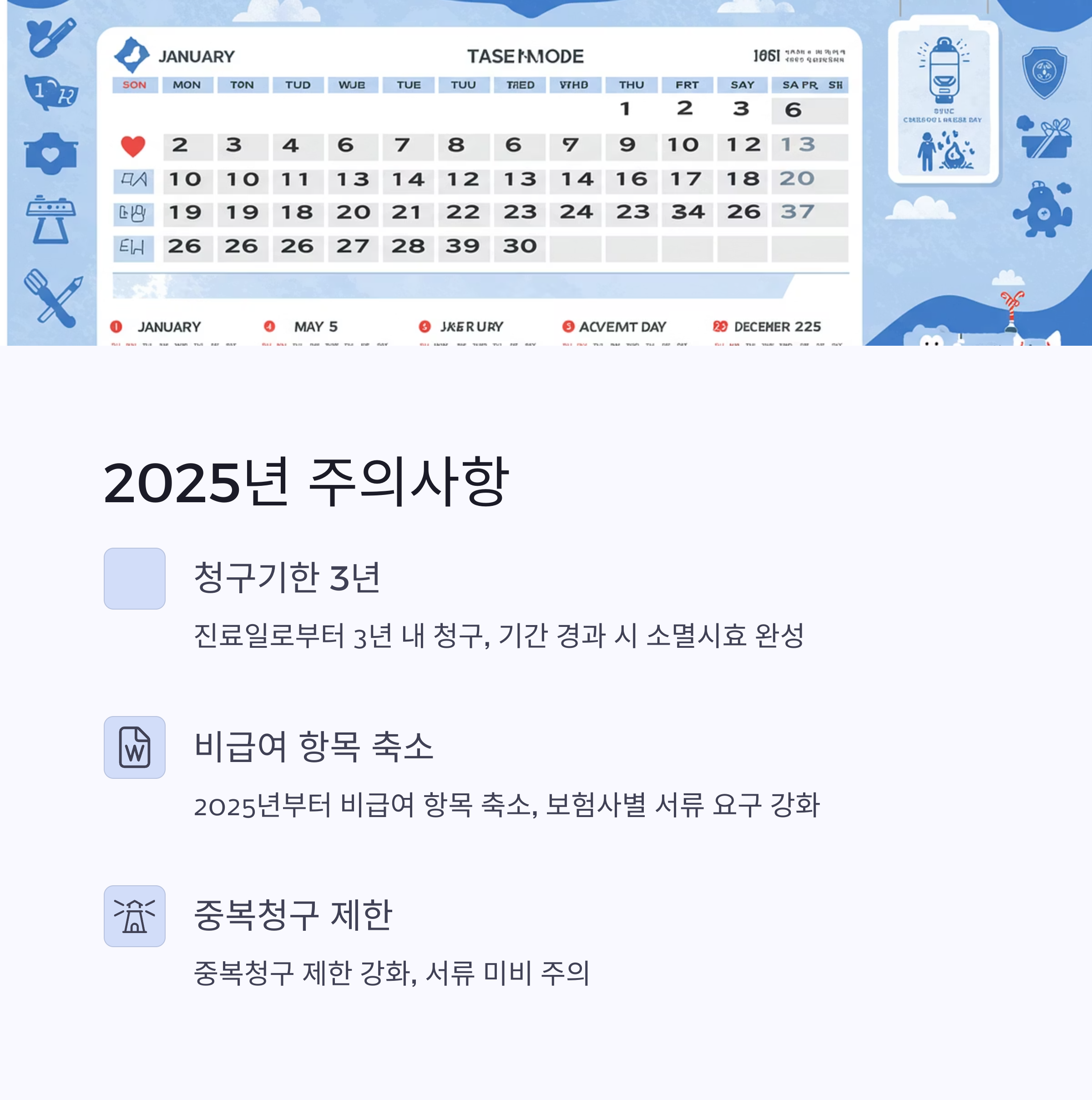 4. 2025년 제도 변화 확인: 비급여 항목 축소중복청구 제한 같은 최신 변화에 맞춰 꼼꼼하게 준비해야 합니다.