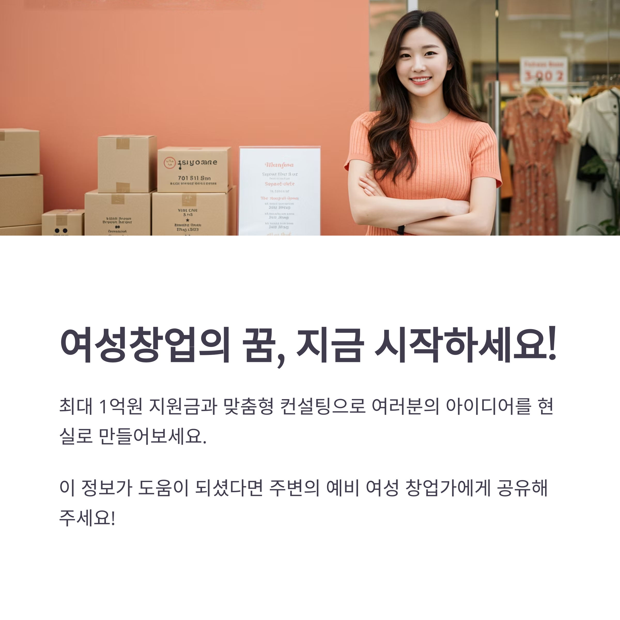 - 이제 혼자서 모든 것을 해결해야 한다는 부담감은 조금 내려놓으셔도 좋을 것 같아요. 정부의 여성창업 지원사업을 잘 활용한다면, 여러분의 성공적인 창업 스토리를 만들어갈 수 있을 거예요!