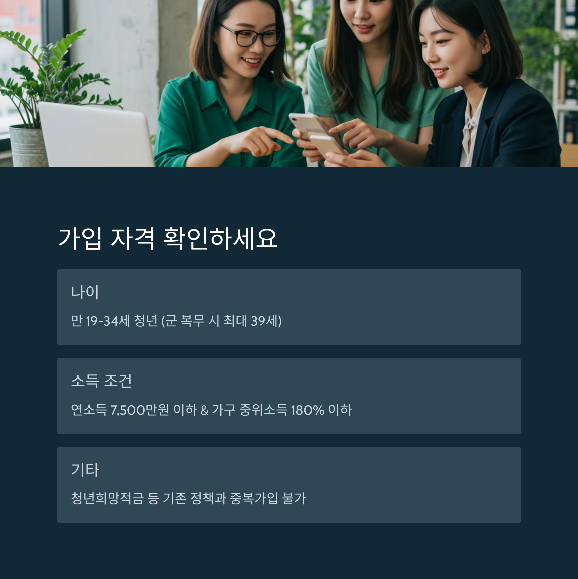 | 기타 | 기존 자산형성지원상품 (청년희망적금 등)과 중복가입 불가 |