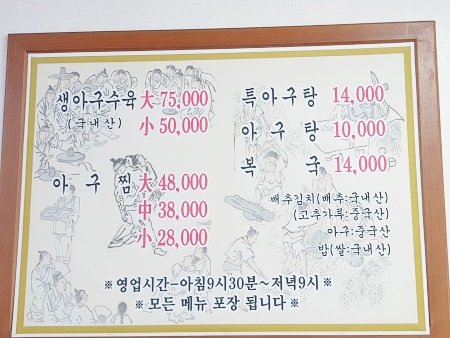김해 식당 생 아구 수육을 먹으러 자리를 옮겼습니다. 백종원 씨가 출연하는 3대 천왕에 소개됐던 곳이기에