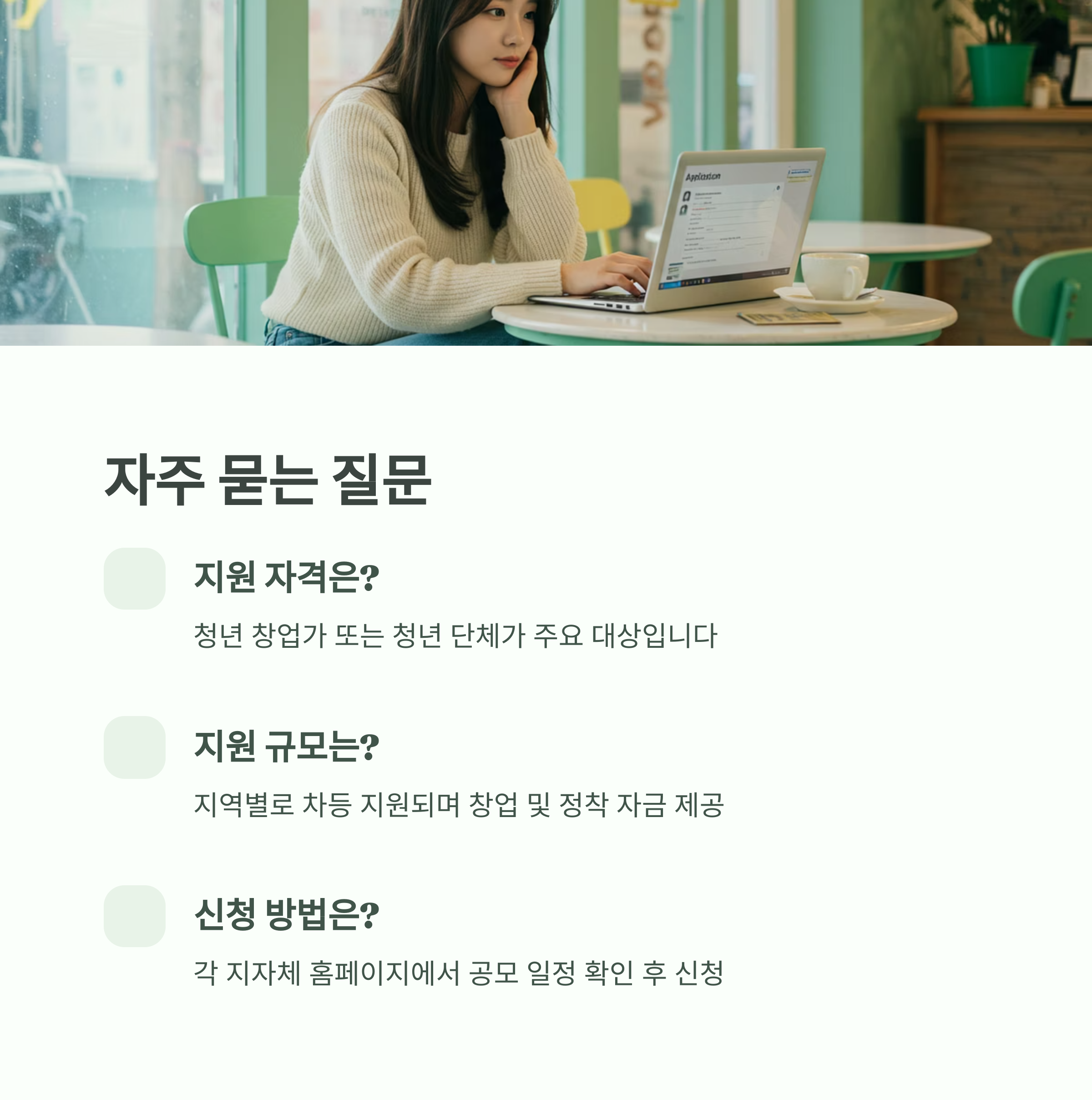 - 창업·창작 지원: 전북 익산의 '툴툴공방', 전북 장수의 '트레일빌리지'처럼 청년들의 창업, 로컬 비즈니스, 창작 활동에 집중하여 새로운 시도를 응원해요.