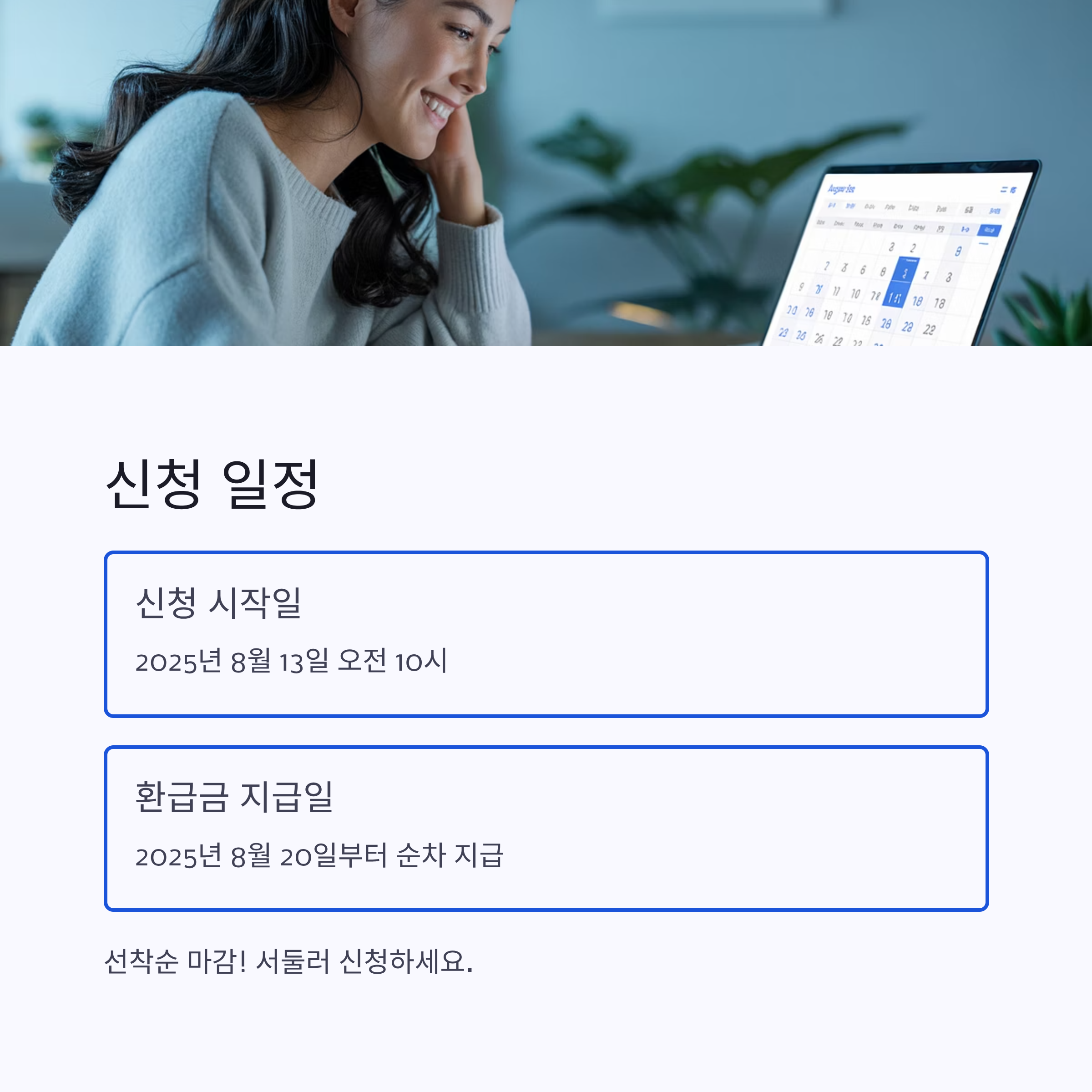 신청 시작일: 2025년 8월 13일 오전 10시부터 (예산 소진 시까지)