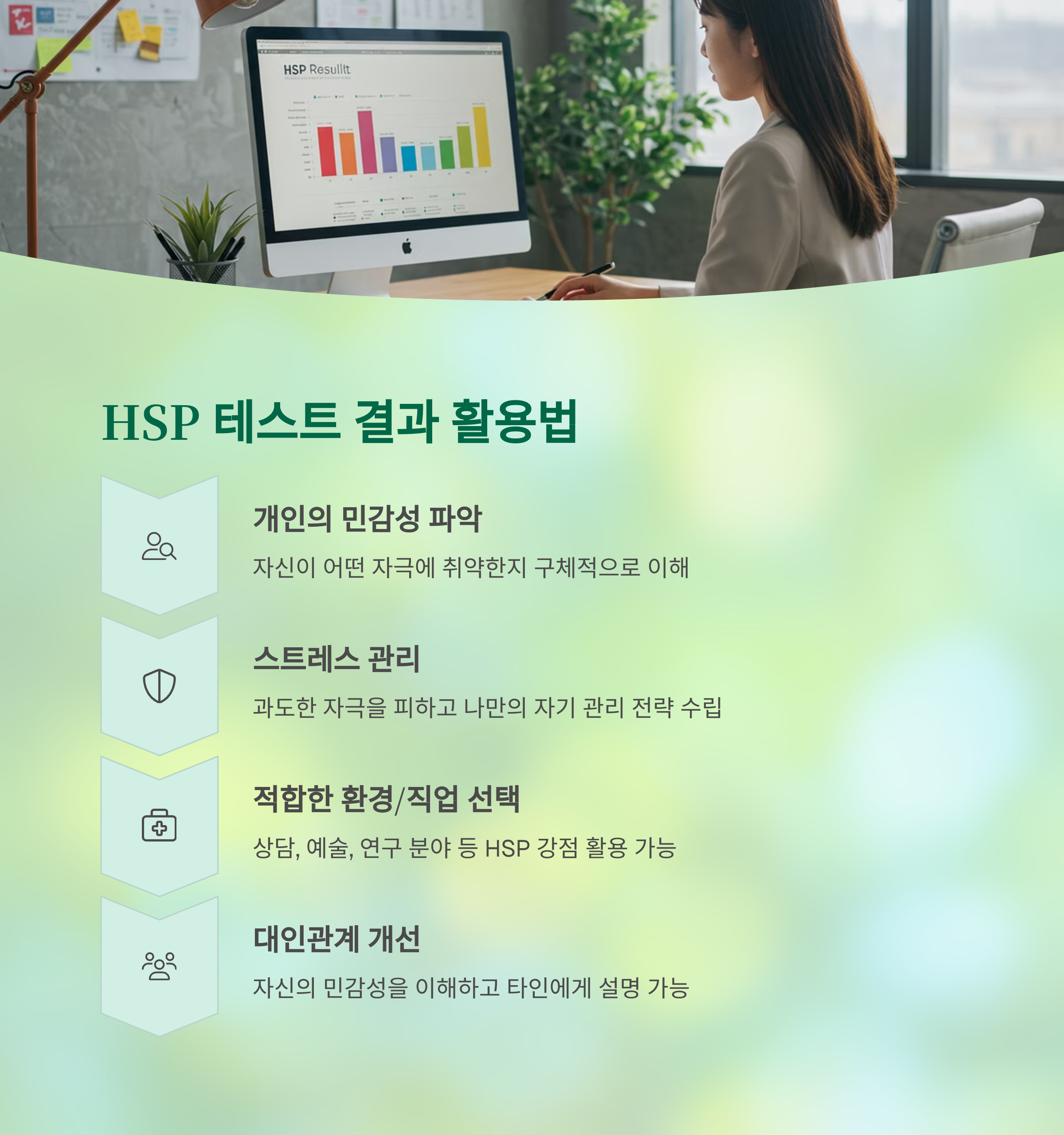 - 적합한 환경 및 직업 선택: 나의 특성에 맞는 환경이나 직업을 찾는 데 도움이 돼요. HSP들은 섬세하고 공감 능력이 뛰어나서 상담, 예술, 연구 분야 등에서 두각을 나타낼 수 있다고 하더라고요.