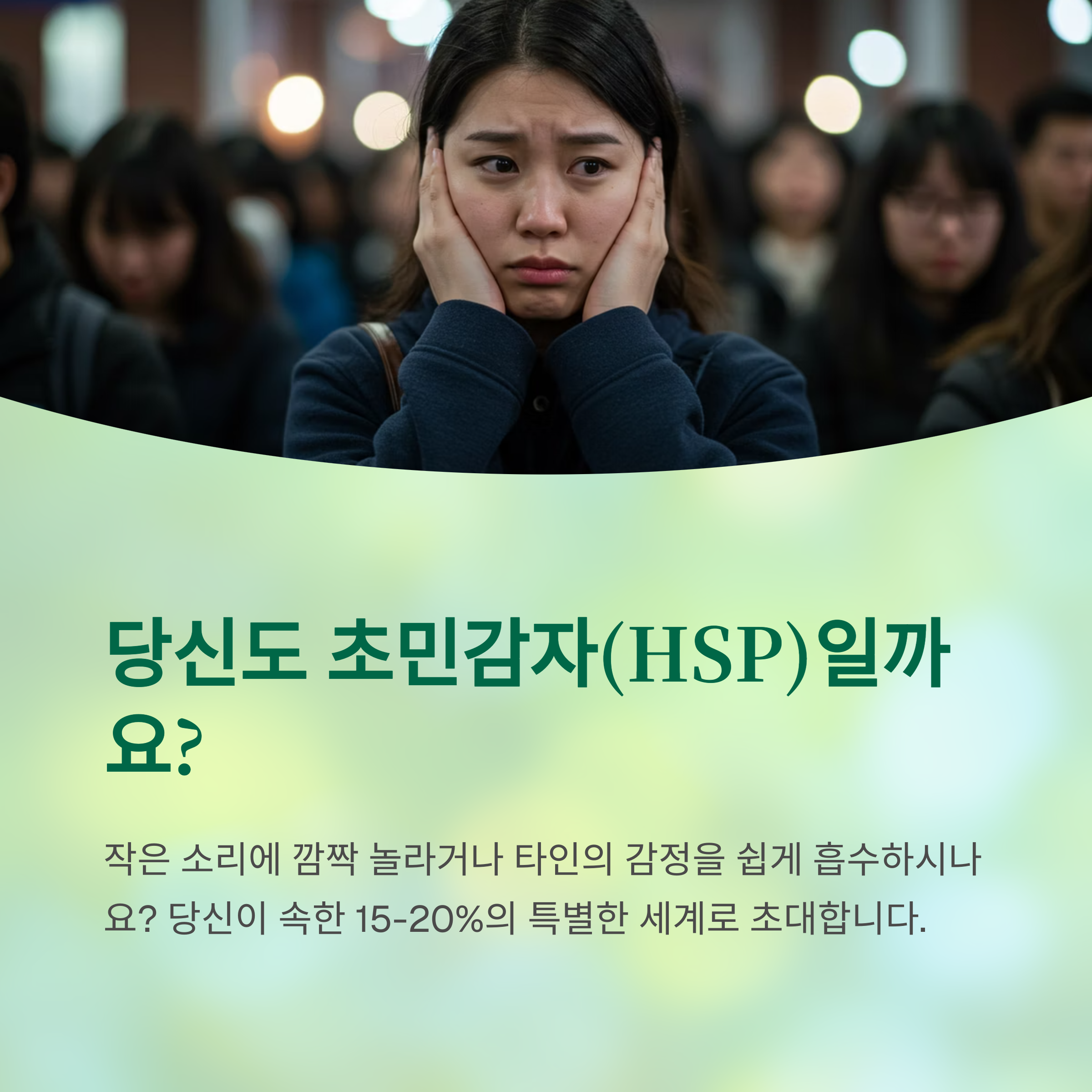 1. HSP(초민감자)는 외부 자극에 민감하게 반응하는 신경 시스템을 가진 사람을 뜻하며, 전 세계 인구의 15~20%에 해당합니다.