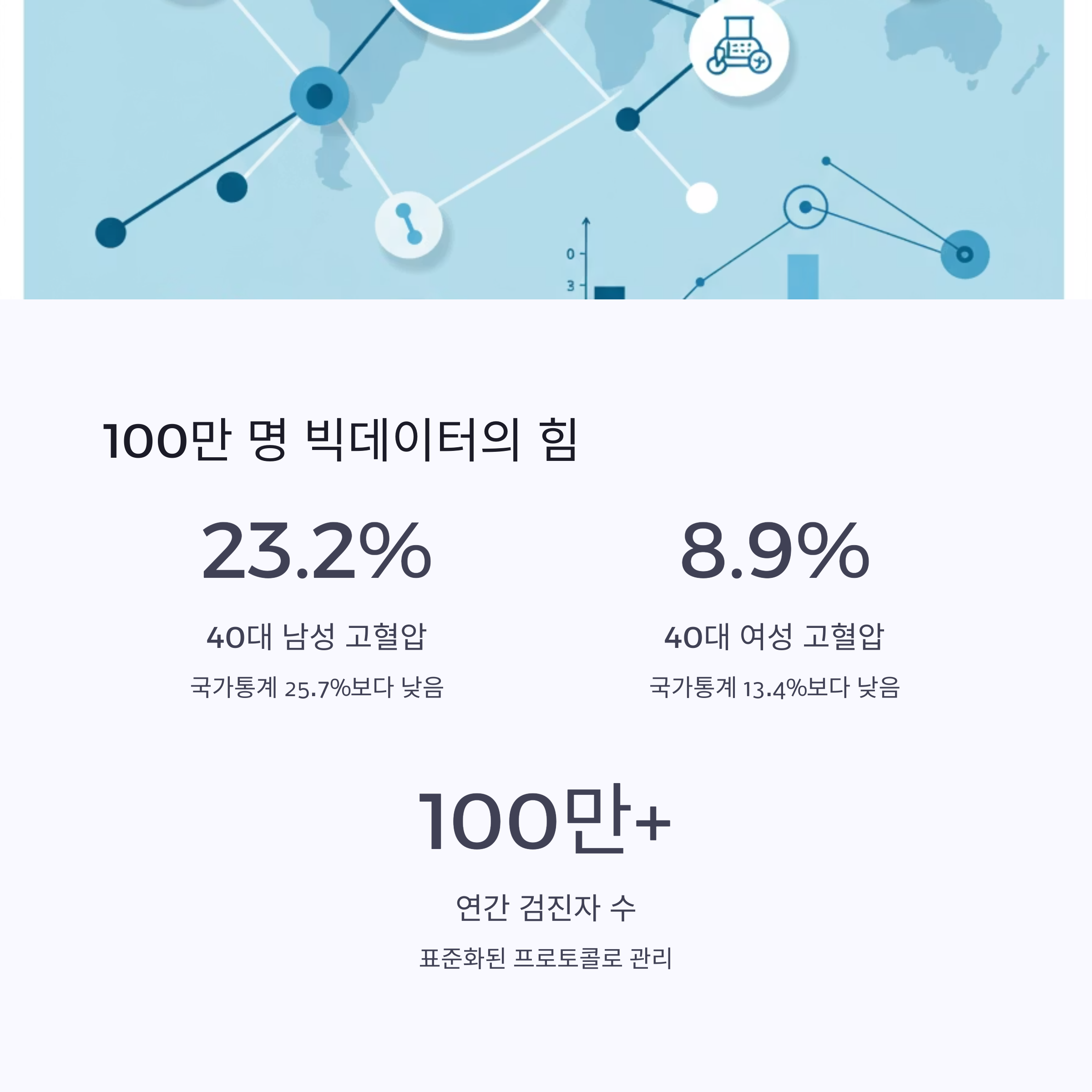 - 국민 건강 증진 기여: 전국 8개 센터에서 연 100만 명 이상의 검진을 진행하고 표준화된 데이터를 관리함으로써 국민 건강 증진에 크게 기여하고 있어요.