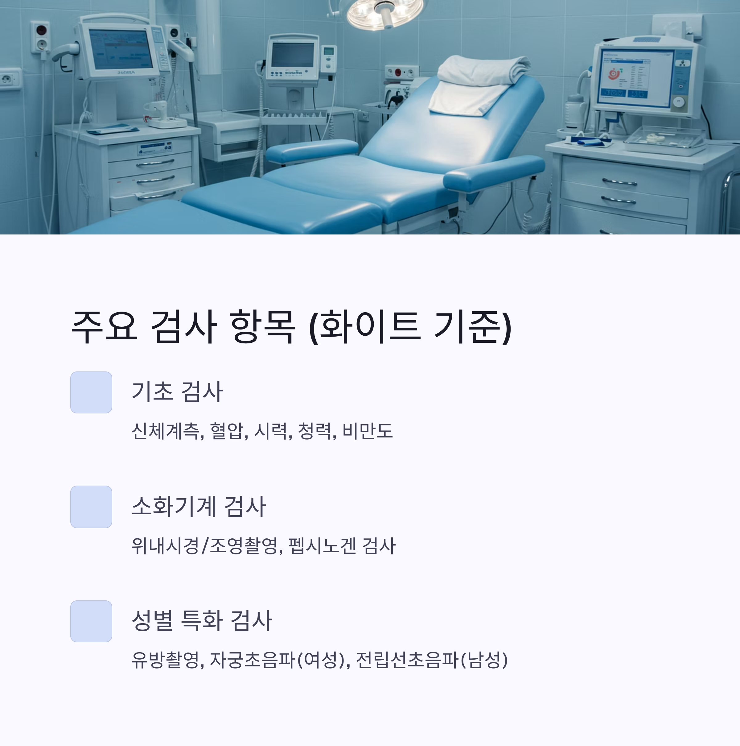 3. KMI 건강검진 주요 검사 항목 (화이트 기준)