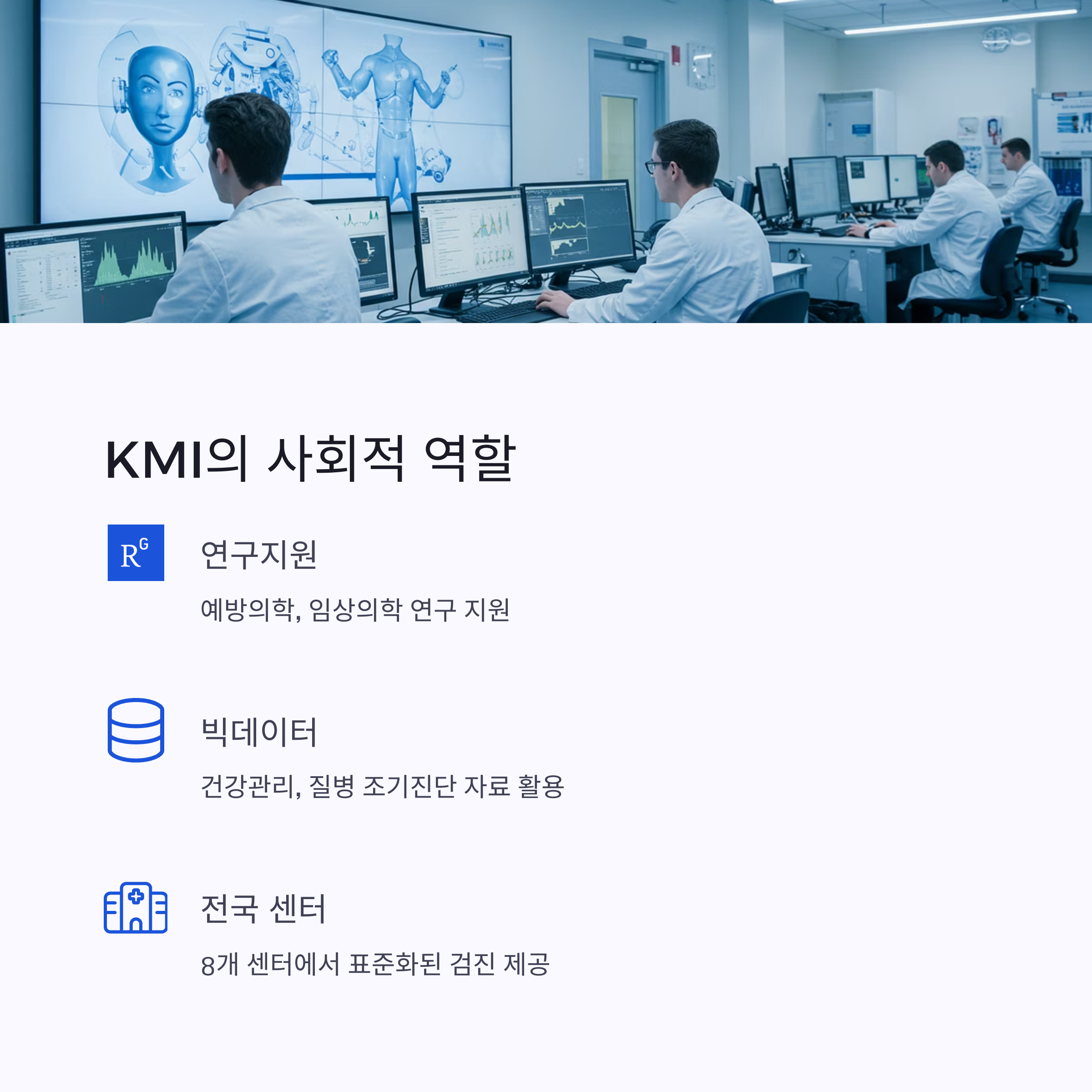 KMI는 단순히 건강검진만 제공하는 곳이 아니더라고요. 예방의학, 임상의학, 기초의학 등 다양한 연구지원사업도 매년 활발하게 진행하고 있답니다. 2025년에도 ‘건강검진 사후관리 체계의 실효성 분석’과 같은 중요한 연구를 지원하고 있다는 사실!