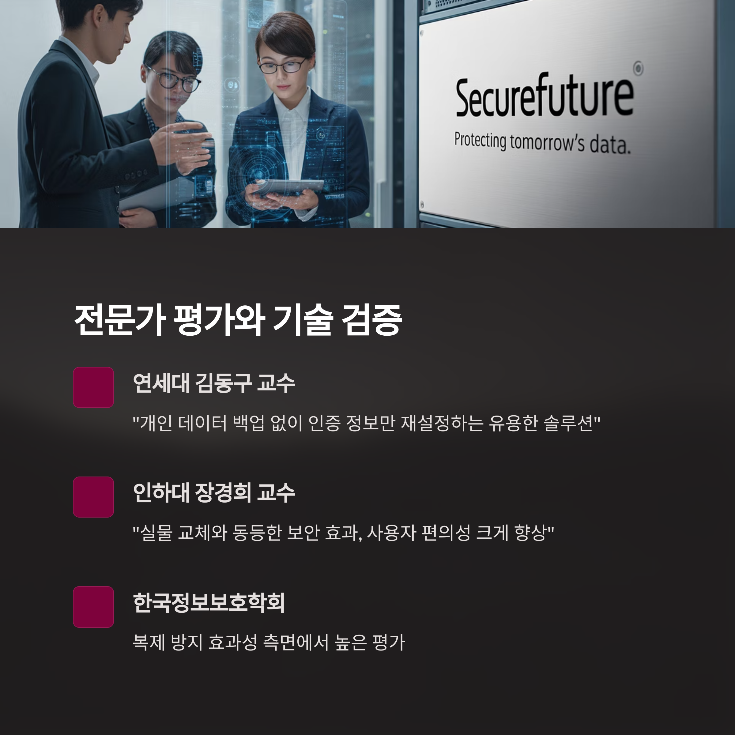 8. 특히 해킹으로 유출된 정보가 있더라도 인증 정보 일부가 변경되면 더 이상 사용할 수 없게 되는 메커니즘이 효과적이라는 평가를 받았습니다.